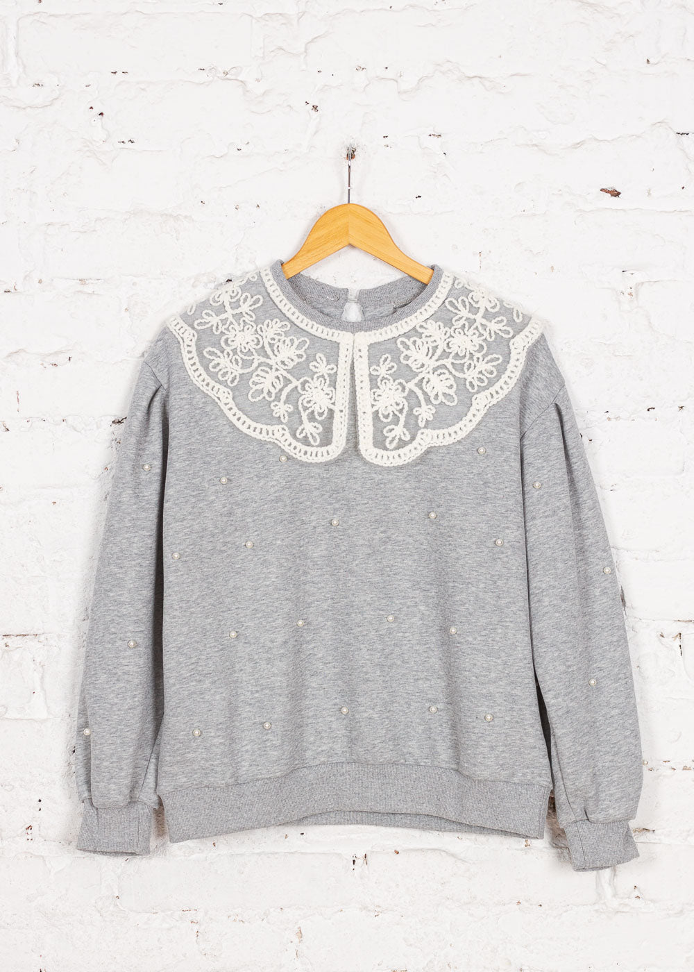 Pulover tricotat cu broderie Sorelle gri