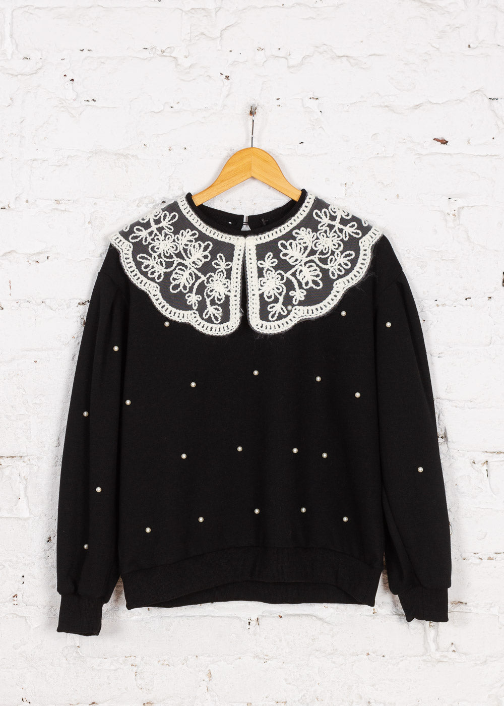 Pulover tricotat cu broderie Sorelle negru