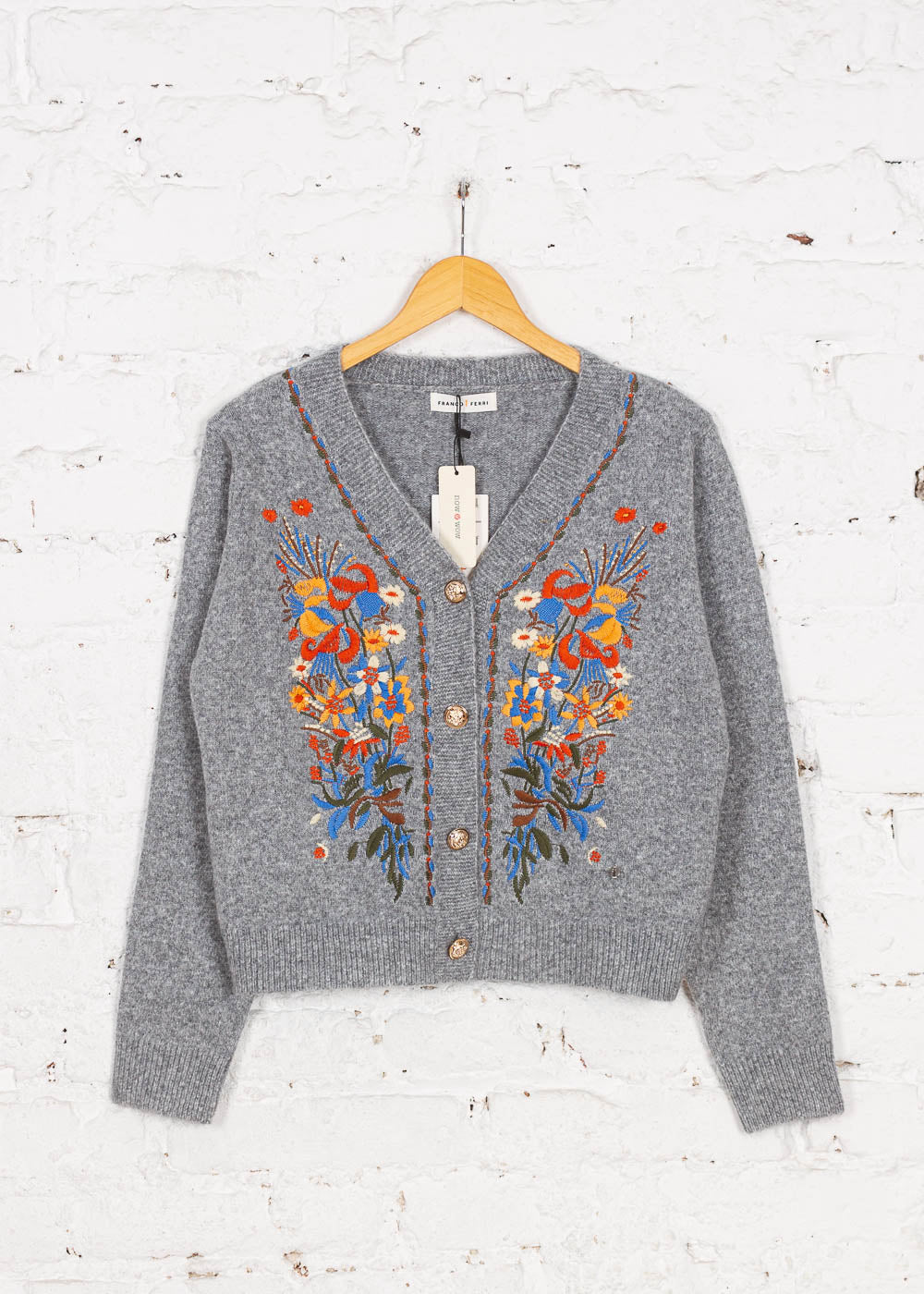 Cardigan tricotat cu broderie Elora gri