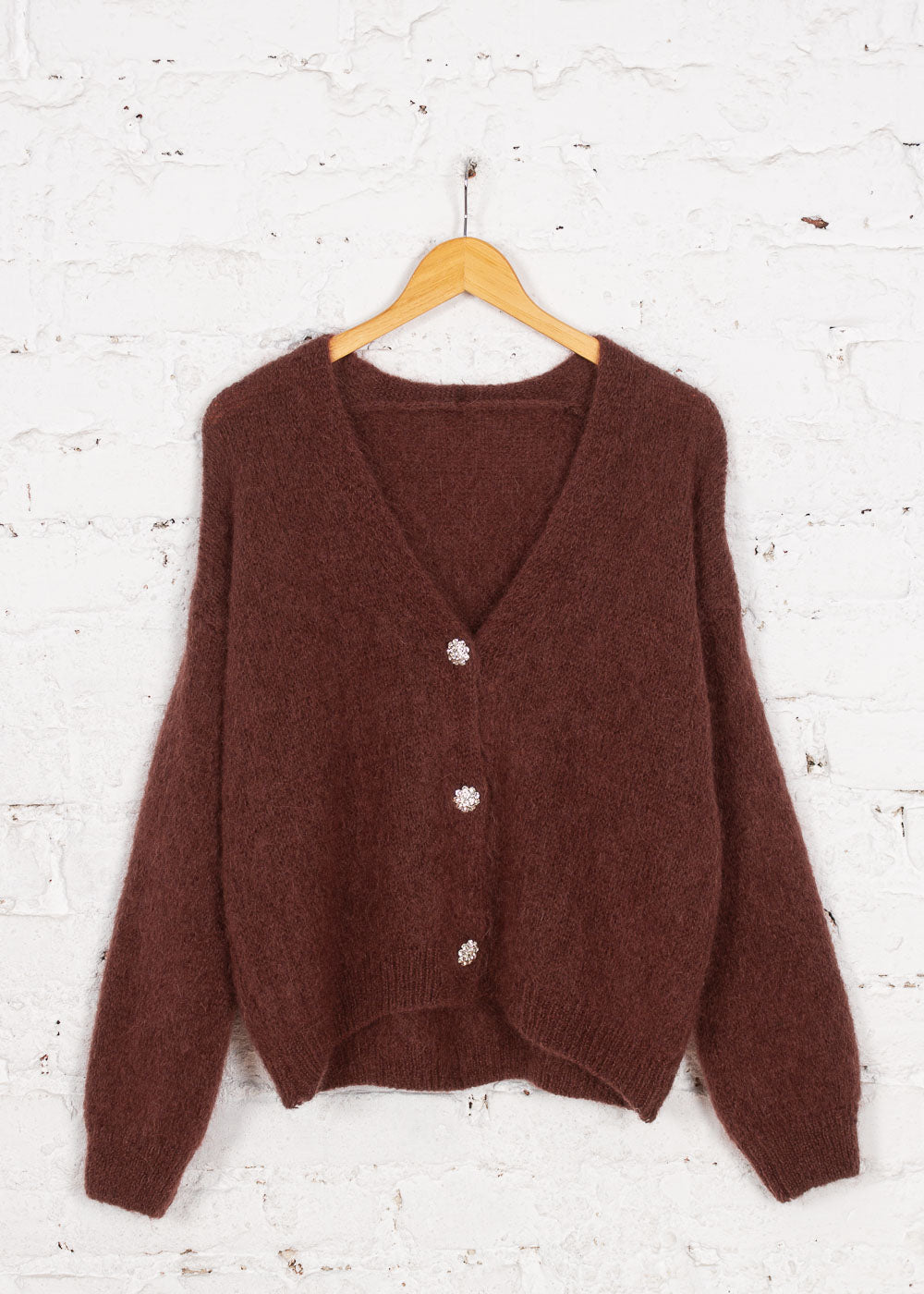Cardigan cu mohair și lână Fable castaniu