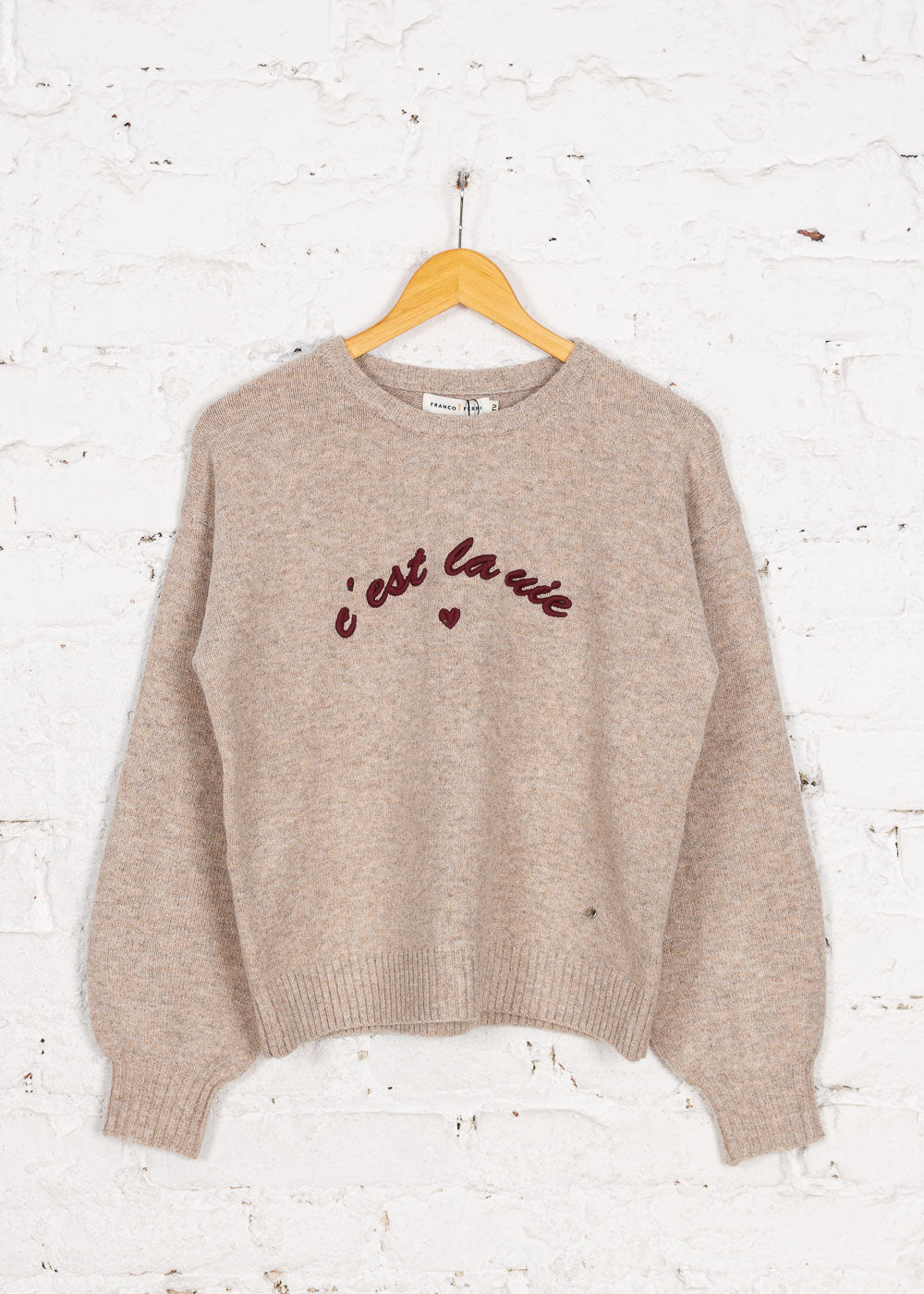Pulover cu lână și text brodat Eloise bej