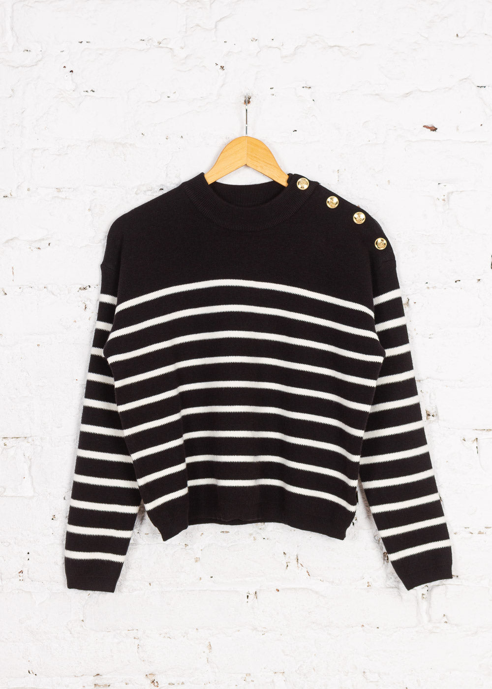 Pulover din tricot Amelia negru cu dungi