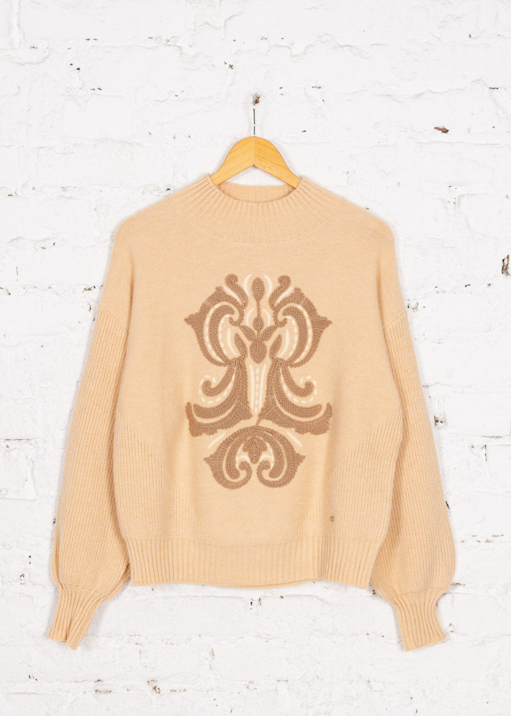 Pulover tricotat cu broderie Sorelle bej