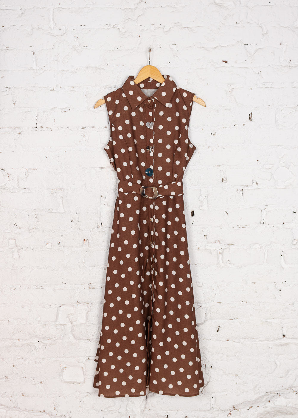 Rochie cămașă Nina maro cu buline