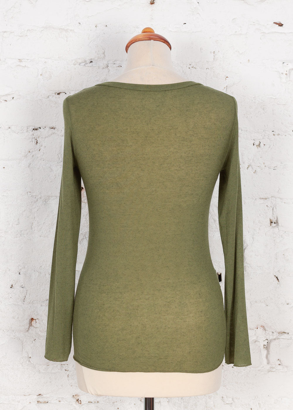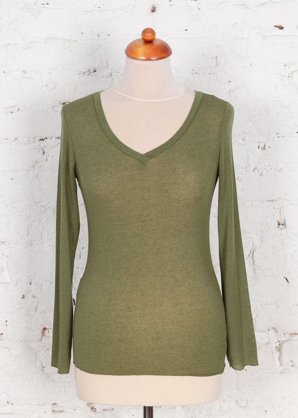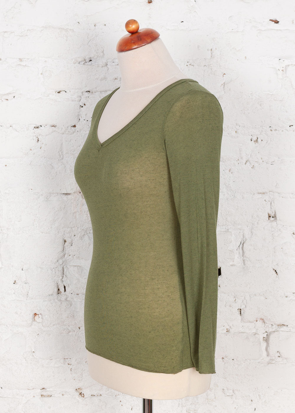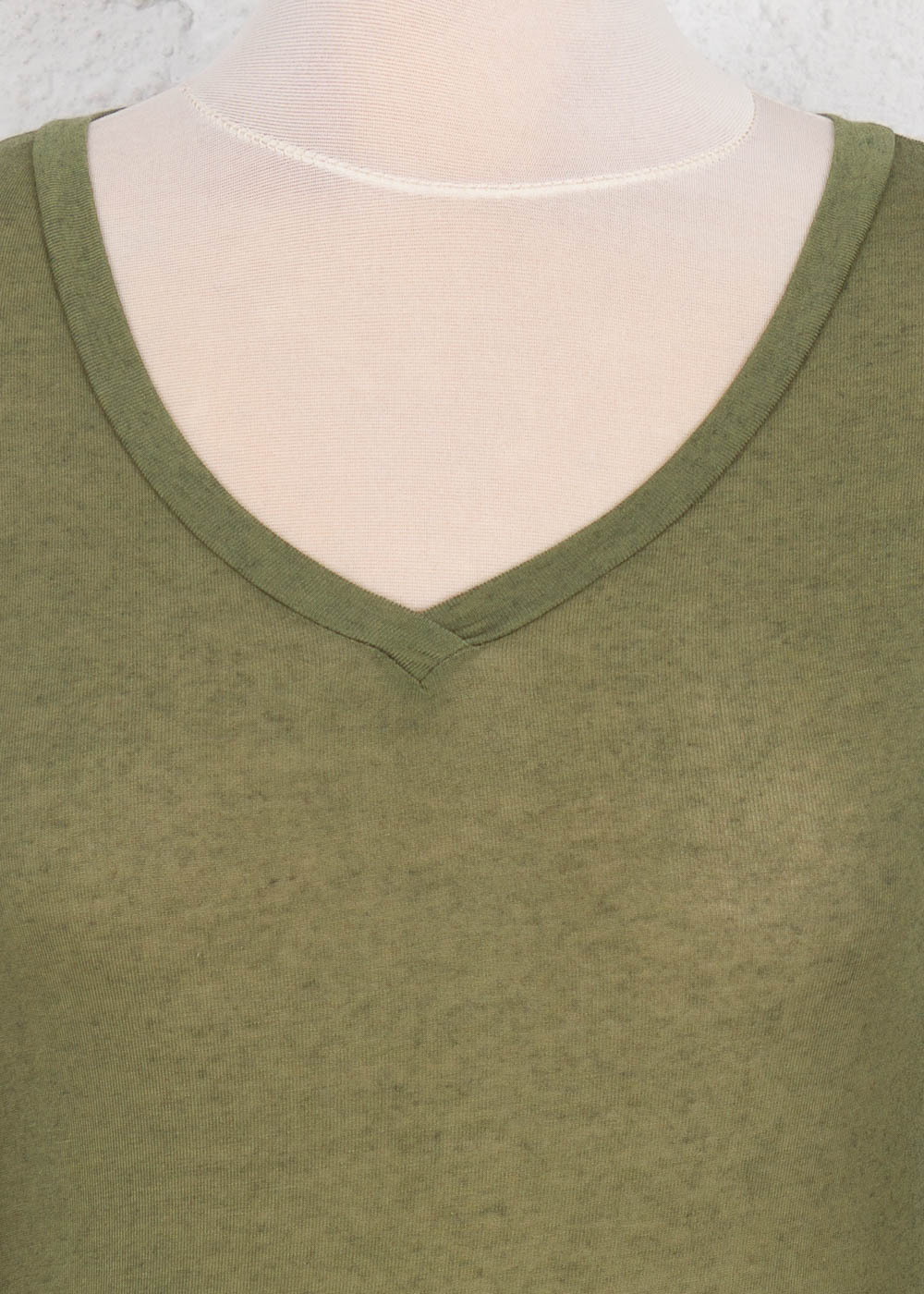 Această bluză cu decolteu în V este realizată dintr-un material fin cu cașmir, oferind confort termic și o textură luxoasă. Croiala mulată și transparența discretă o transformă într-o piesă versatilă, ideală pentru layering sau ținute senzuale și rafinate, punând în evidență linia gâtului într-un mod elegant.