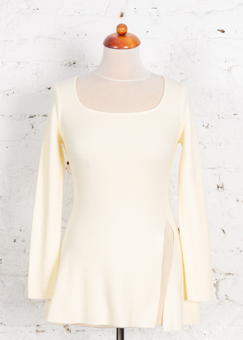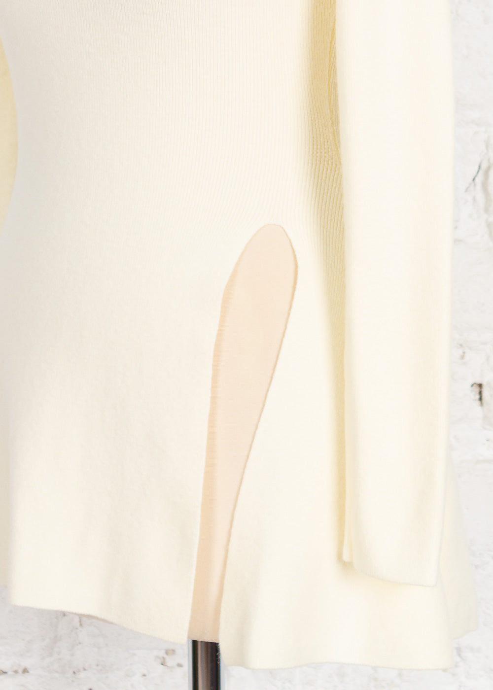 Această bluză din tricot adaugă un aer elegant și feminin ținutei tale. Cu guler rotund adânc, croială cambrată în talie și evazată în partea de jos, completată de un slit frontal subtil, bluza este ideală pentru a evidenția silueta. Mărimea unică și croiala ușor pe corp îi conferă versatilitate și confort.