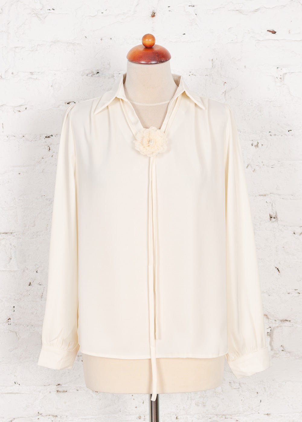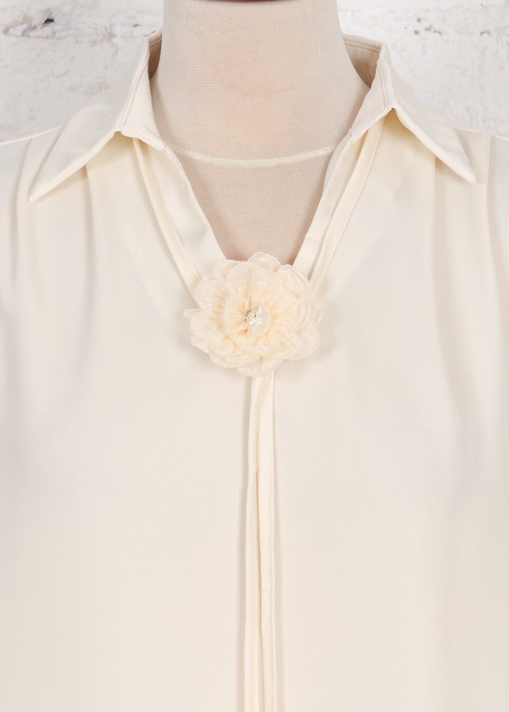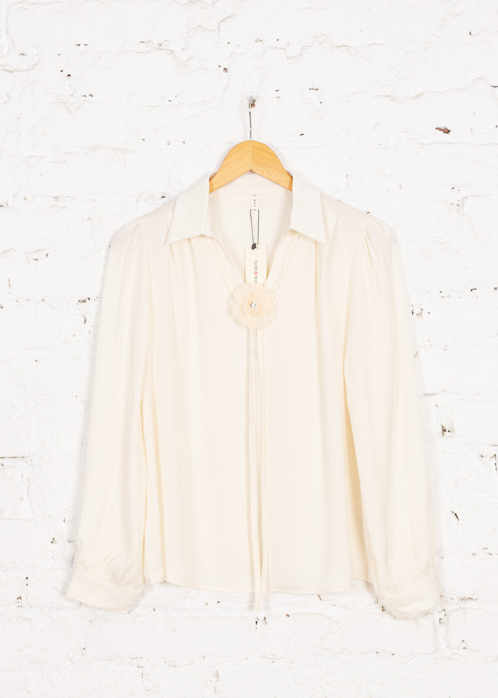 Elegantă și feminină, bluză Lucinda din material delicat crem adaugă un plus de rafinament oricărei ținute. Gulerul tip cămașă, decolteul în V și accesoriile speciale, precum broșa în formă de floare și șiretul tip cravată, completează un design sofisticat, iar croiala relaxată oferă confort maxim.