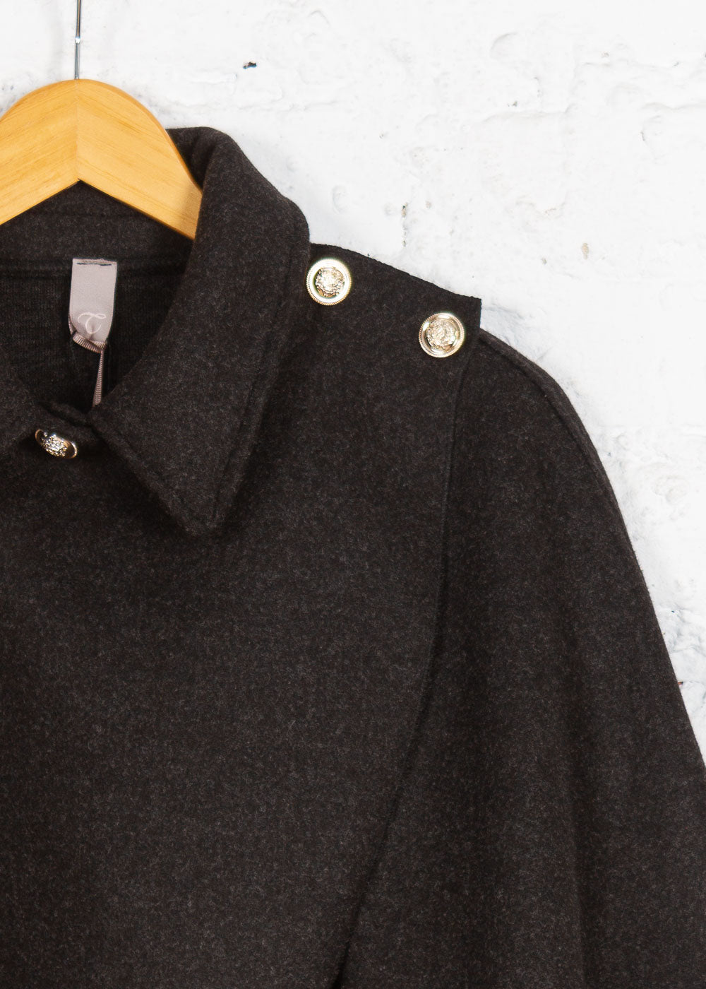 Această capă petrecută adaugă eleganță și rafinament ținutelor tale. Se închide parte peste parte și este accesorizată cu butoni aurii care îi oferă un accent sofisticat. Croiala normală și terminația asimetrică o fac potrivită pentru orice siluetă, iar gulerul clasic îi completează aspectul.