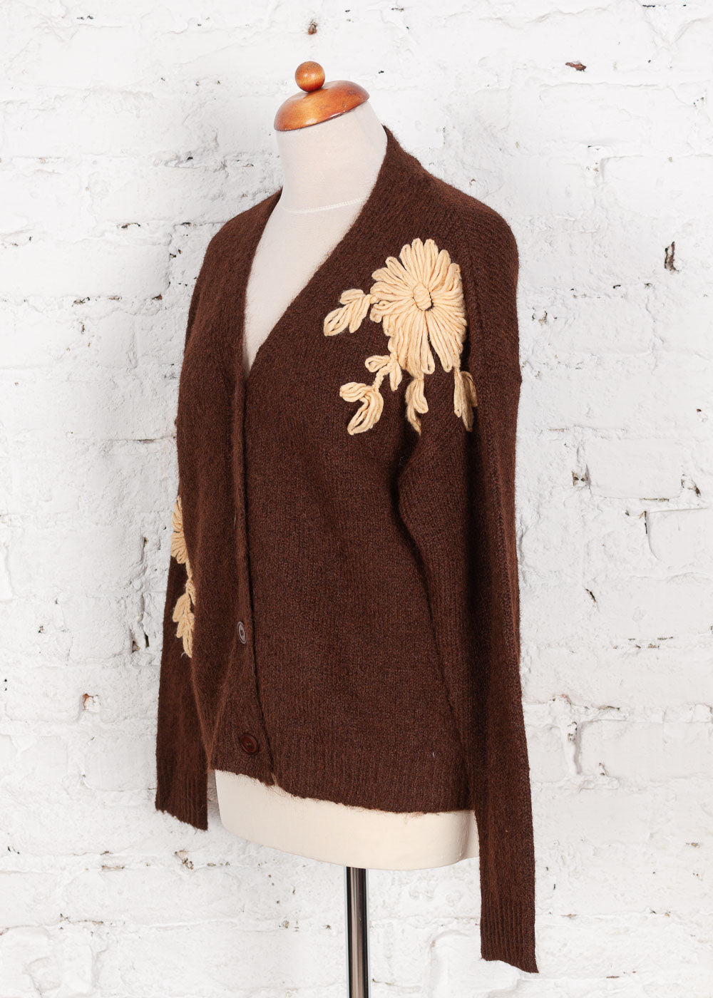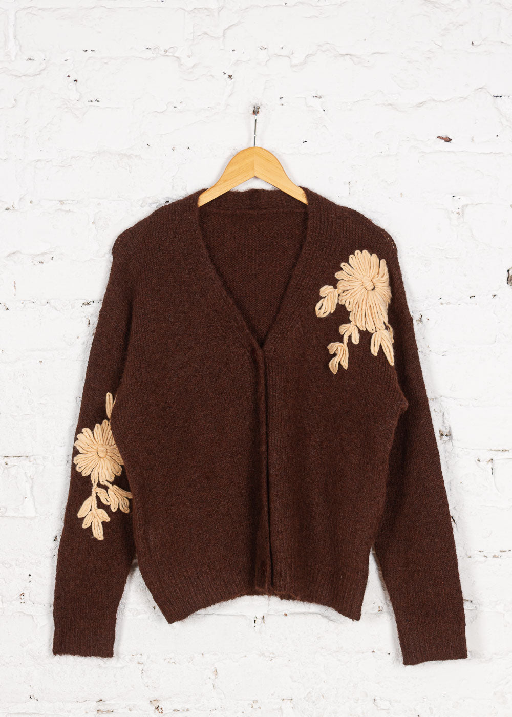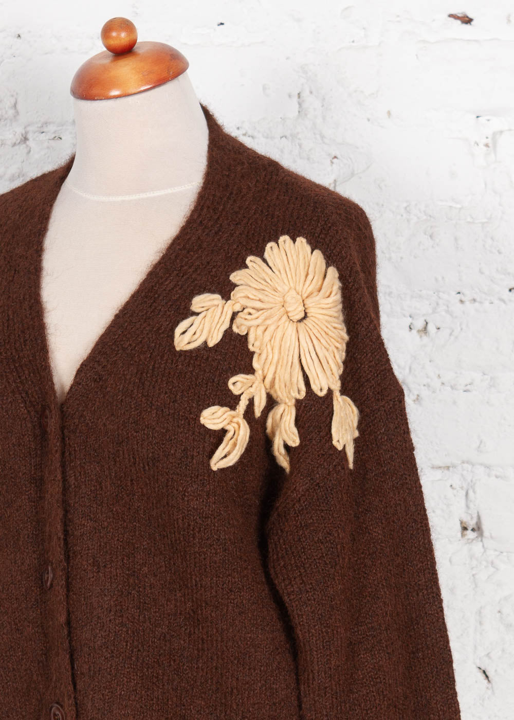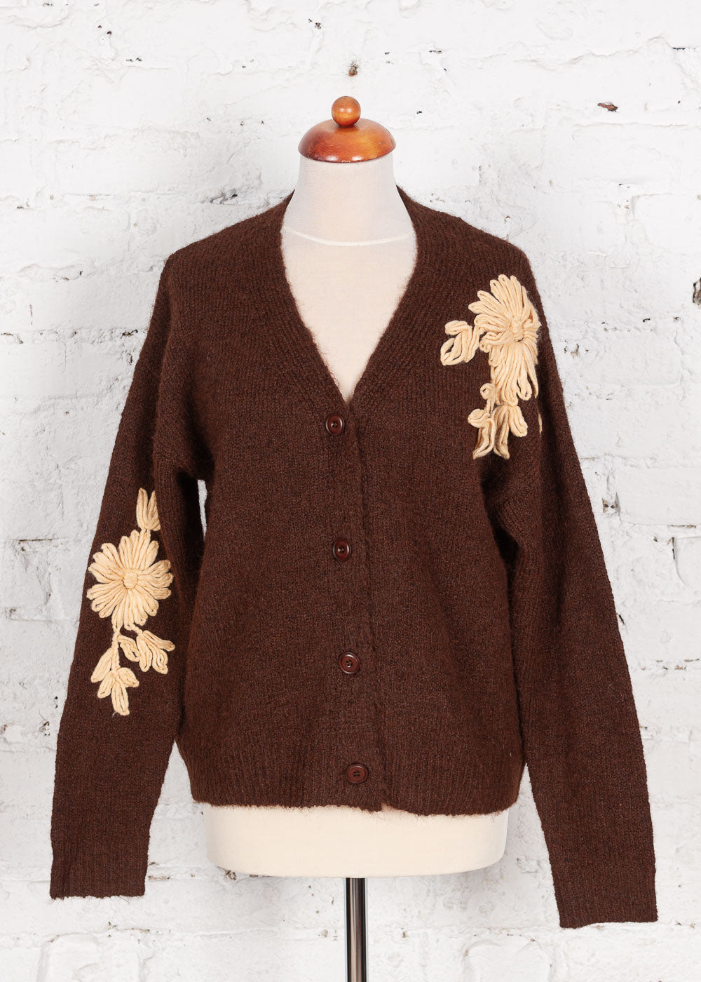 Cardiganul tricotat cu detalii florale aduce un plus de feminitate și rafinament oricărei ținute. Realizat dintr-un mix de fibre și cu inserții de lână, este ideal pentru a oferi căldură și confort în zilele mai reci, păstrând în același timp o croială relaxată și versatilă.