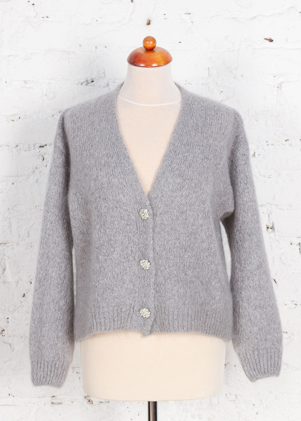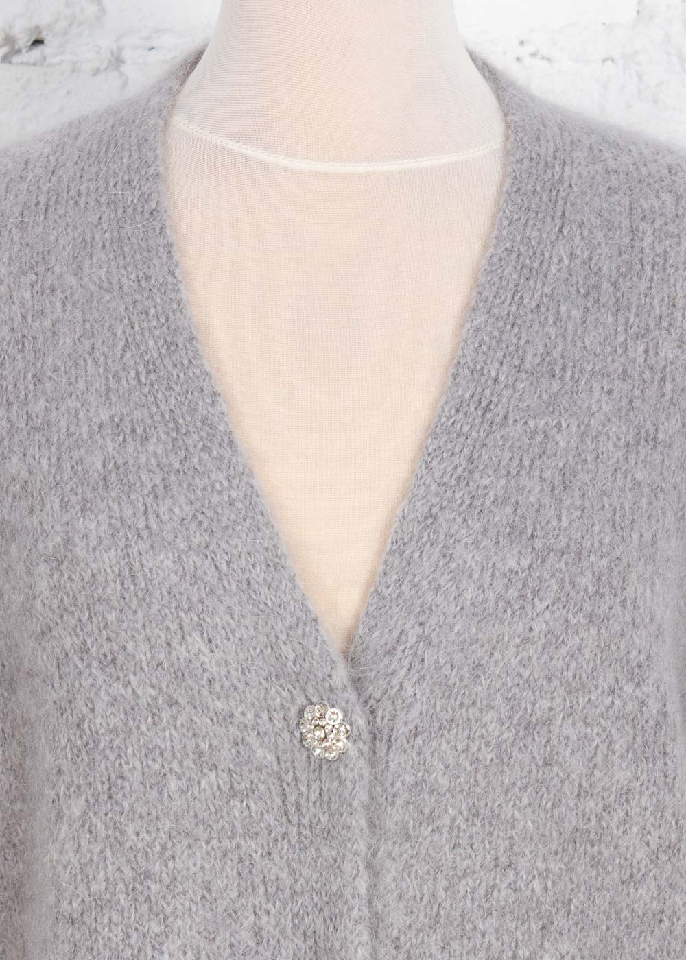 Acest cardigan deosebit, cu mohair și lână în compoziție, este alegerea ideală pentru zilele răcoroase, oferindu-ți confort și un stil relaxat. Cu o croială lejeră și nasturi eleganți decorați cu pietricele, acest cardigan adaugă un plus de rafinament oricărei ținute. Este disponibil într-o gamă variată de culori și este creat pentru a fi purtat cu ușurință în orice combinație vestimentară.