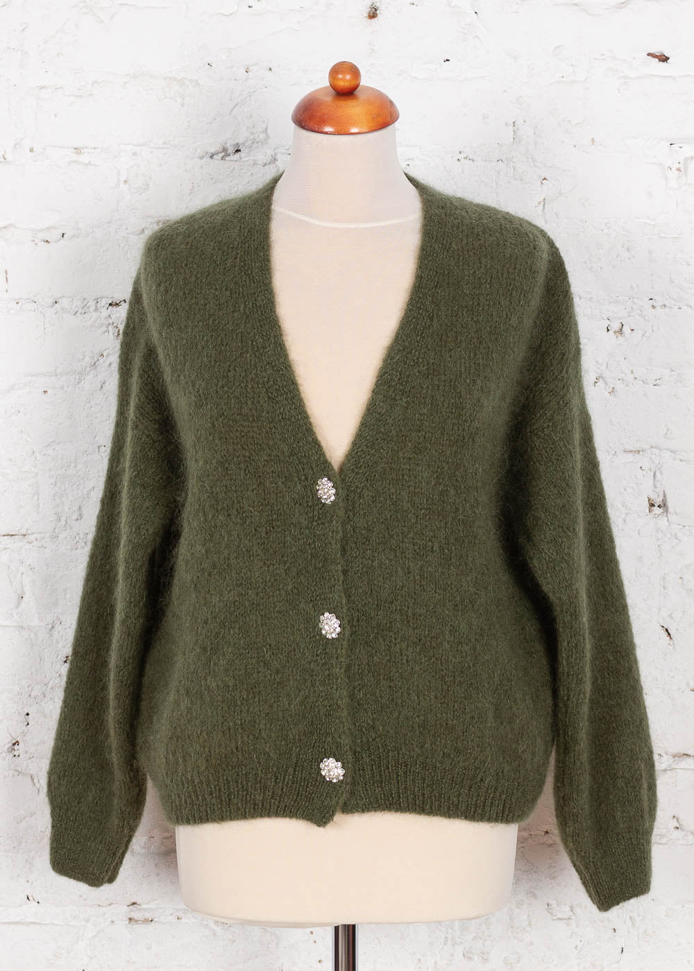 Acest cardigan deosebit, cu mohair și lână în compoziție, este alegerea ideală pentru zilele răcoroase, oferindu-ți confort și un stil relaxat. Cu o croială lejeră și nasturi eleganți decorați cu pietricele, acest cardigan adaugă un plus de rafinament oricărei ținute. Este disponibil într-o gamă variată de culori și este creat pentru a fi purtat cu ușurință în orice combinație vestimentară.