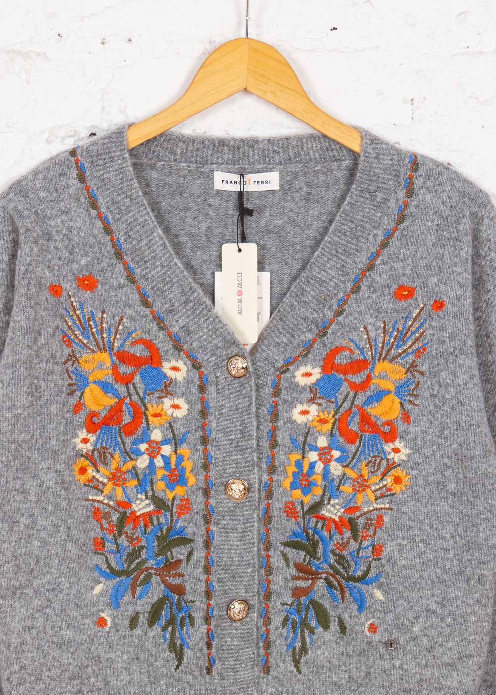Cardigan tricotat cu broderie Elora gri
