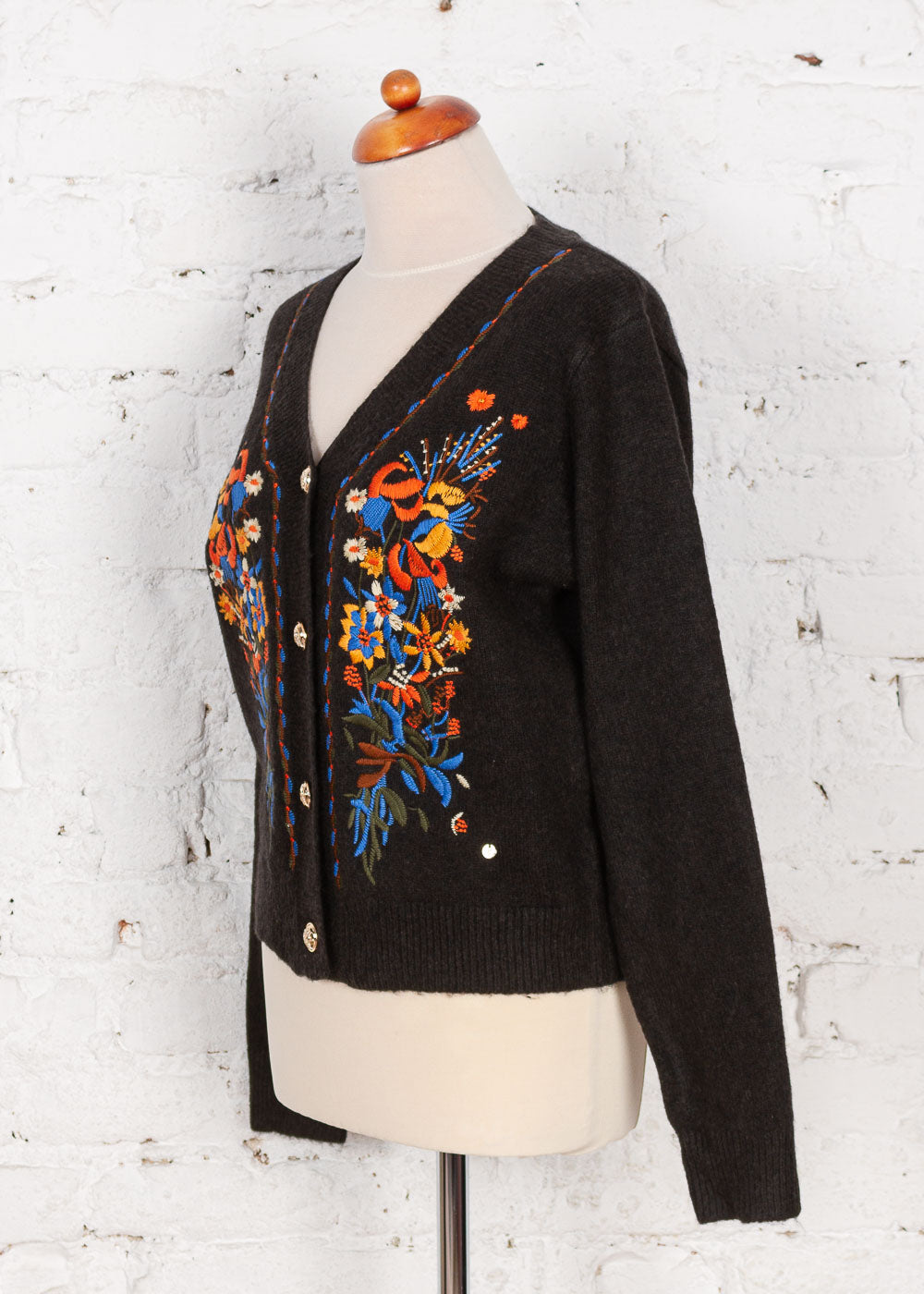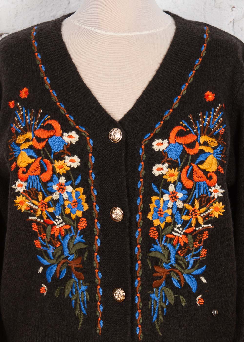 Cardiganul Elora îmbină confortul croielii relaxate cu farmecul broderiei florale în culori vii. Cu decolteu în V și model brodat pe față, este disponibil în variantele negru, bej și gri, fiind o piesă versatilă în mărime unică.