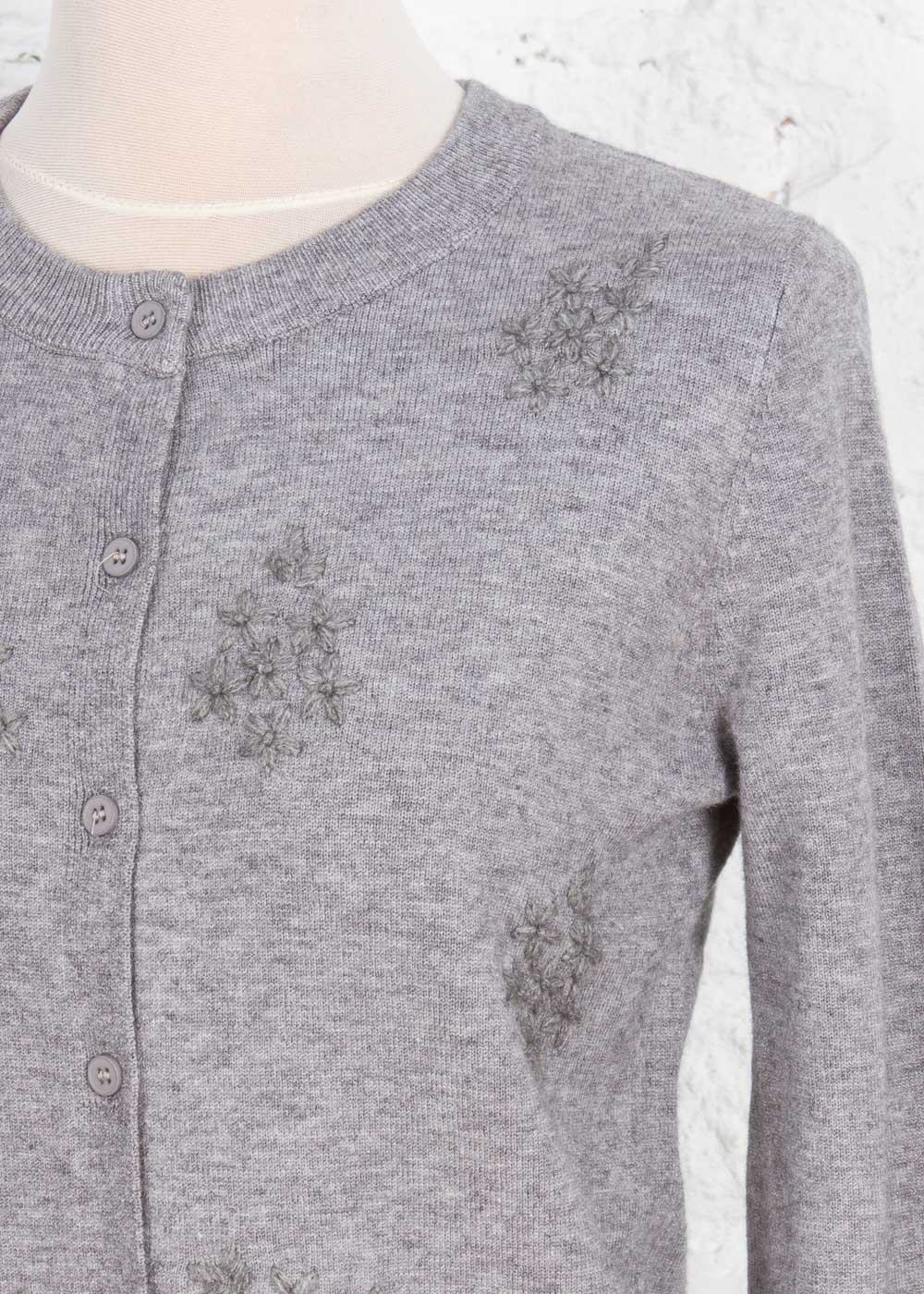Acest cardigan delicat din tricot cu model floral pe față adaugă un aer feminin și elegant oricărei ținute. Gulerul rotund și închiderea cu nasturi îl fac versatil și ușor de purtat, fiind alegerea perfectă pentru zilele răcoroase.