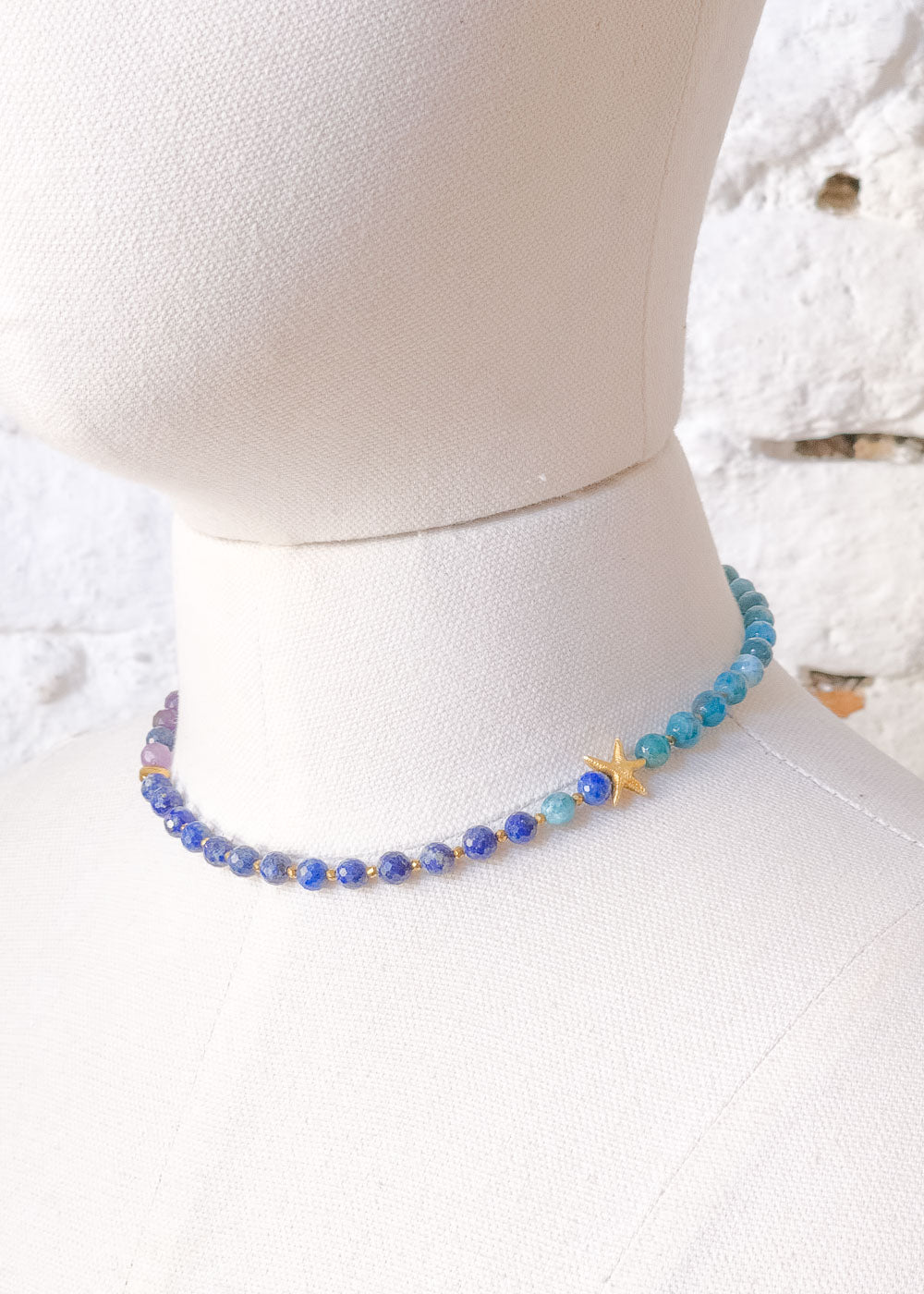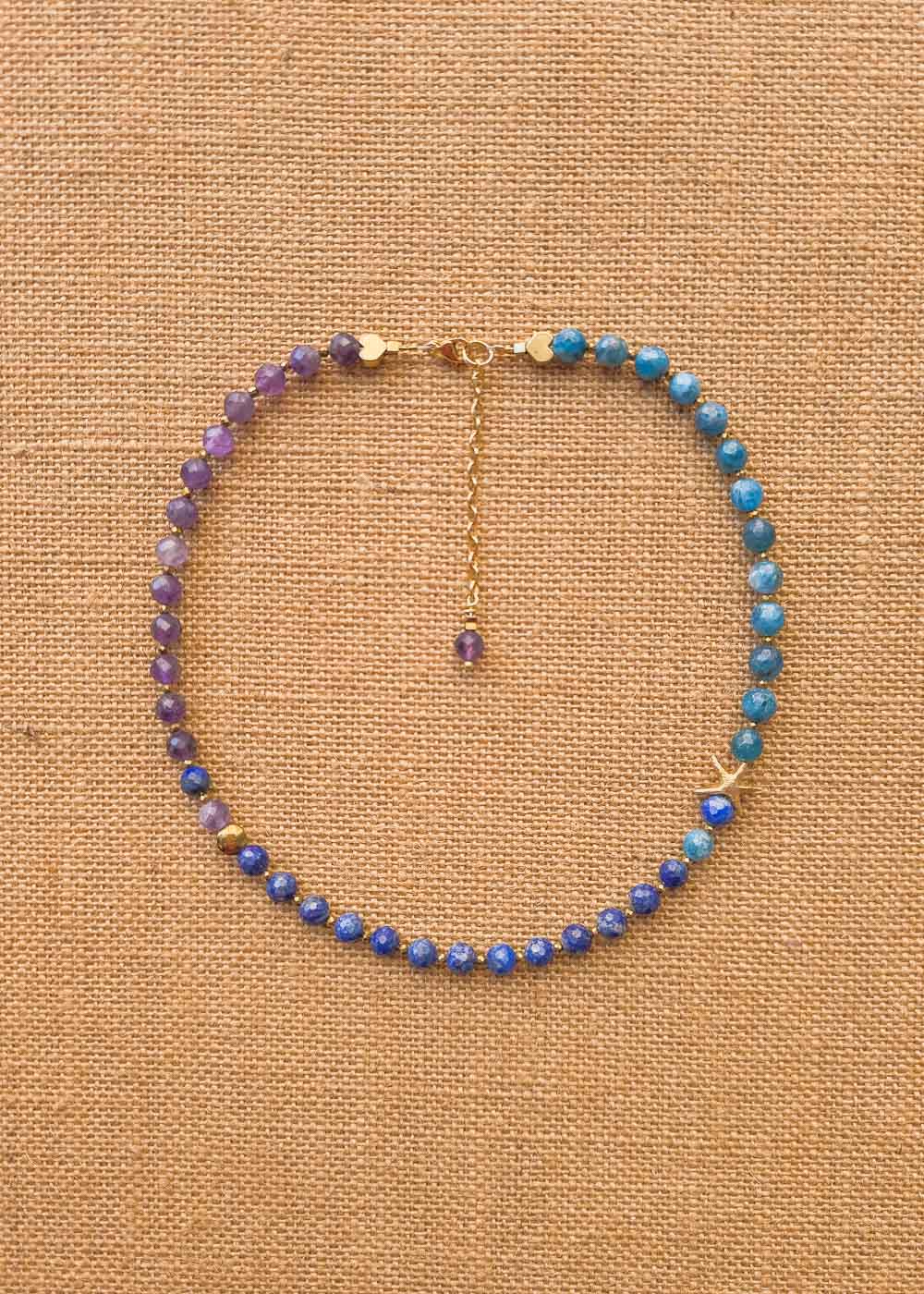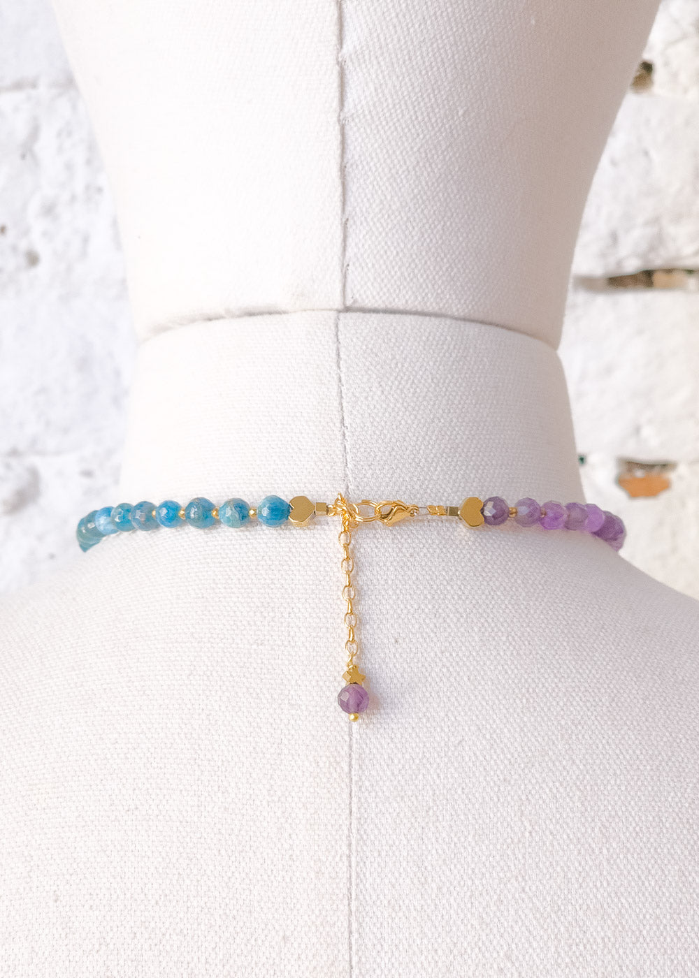 Acest colier este realizat manual în atelierul nostru, îmbinând armonios perle de cultură, pietre semiprețioase și elemente ceramice, toate montate pe un fir rezistent din inox siliconat. Încuierea din argint aurit adaugă un plus de rafinament, transformând fiecare colier într-o piesă unică, perfectă pentru orice ocazie.