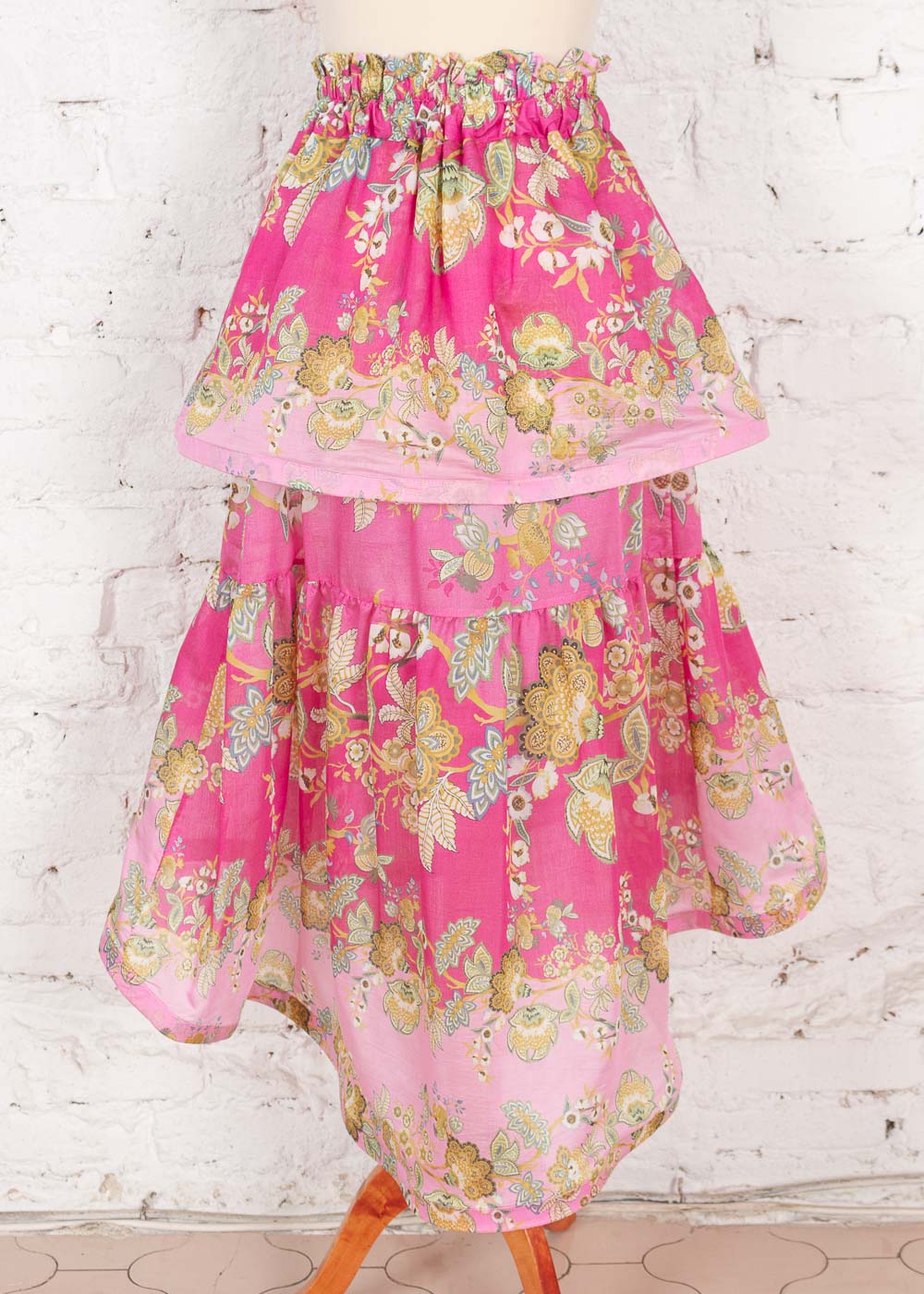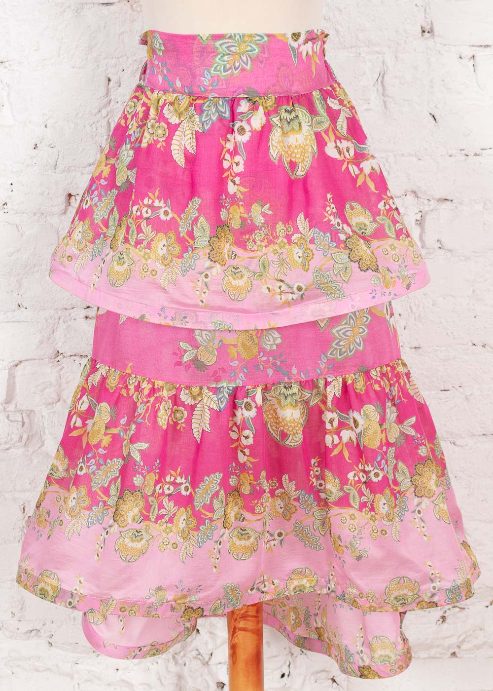 Fustă vaporoasă și feminină, perfectă pentru vară. Volanele întărite creează un volum spectaculos, iar imprimeul viu colorat adaugă o notă jucăușă și romantică oricărei ținute.