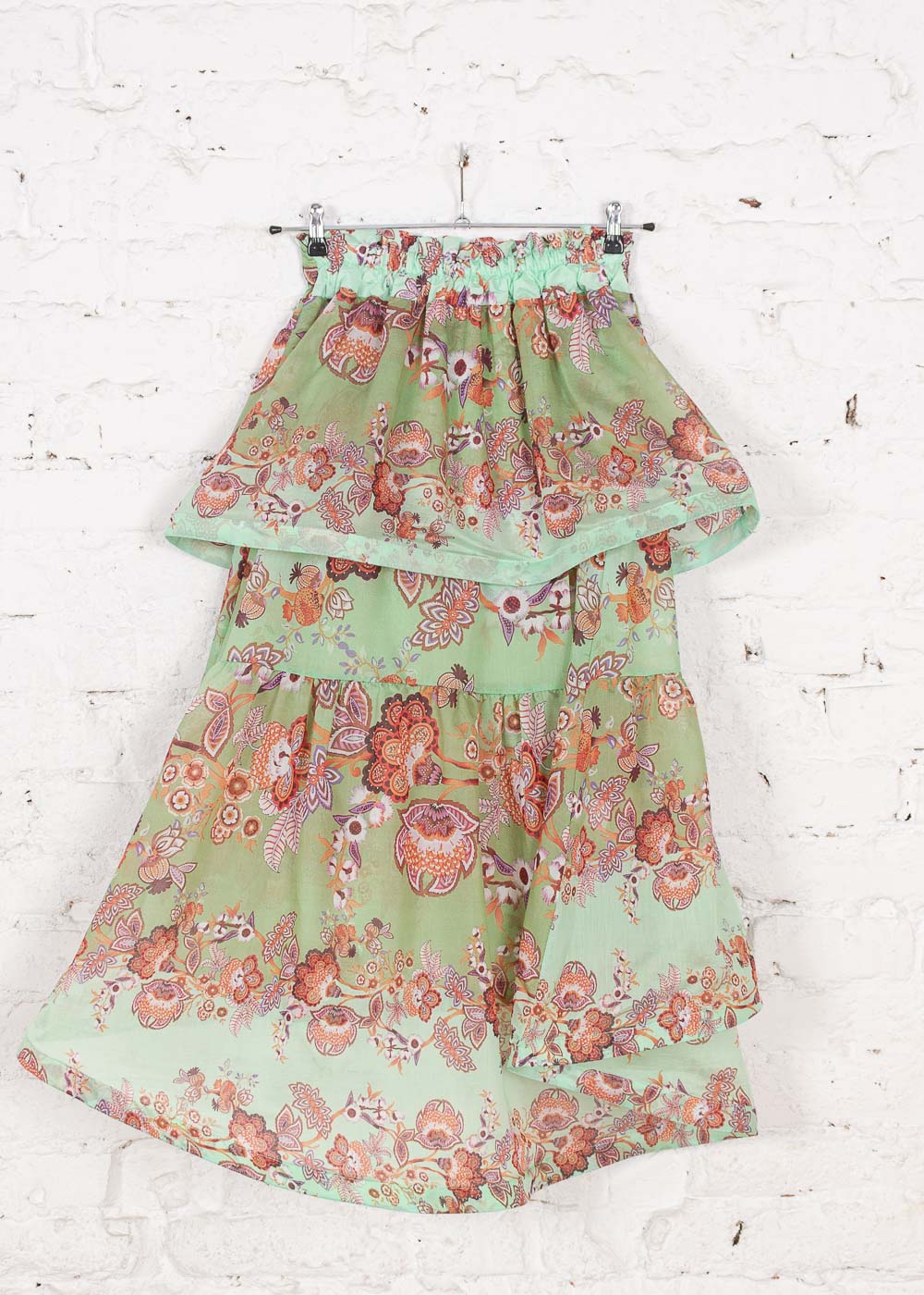 Fustă vaporoasă și feminină, perfectă pentru vară. Volanele întărite creează un volum spectaculos, iar imprimeul viu colorat adaugă o notă jucăușă și romantică oricărei ținute.