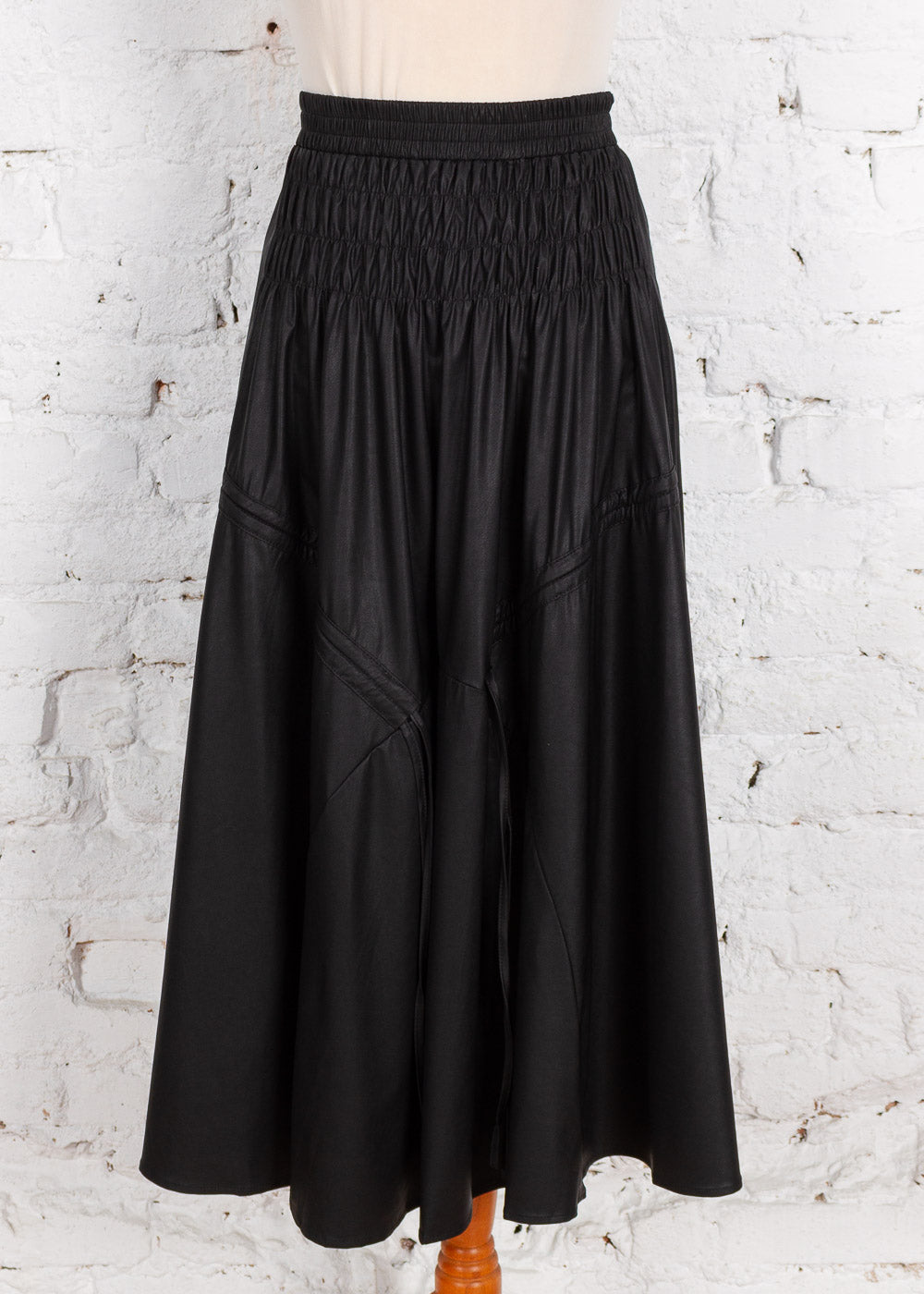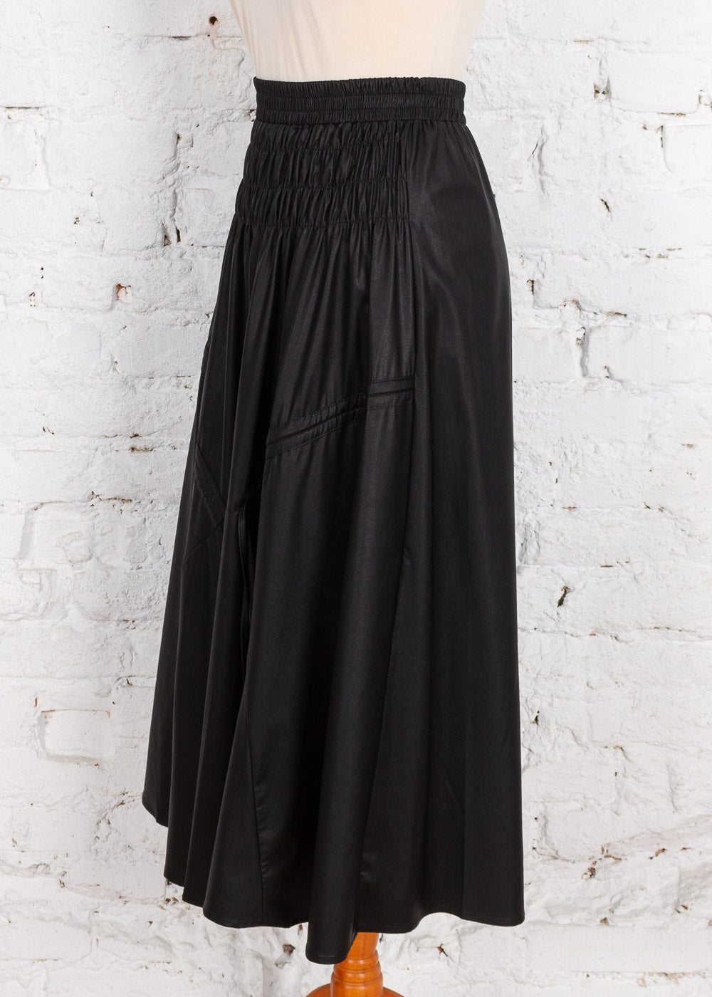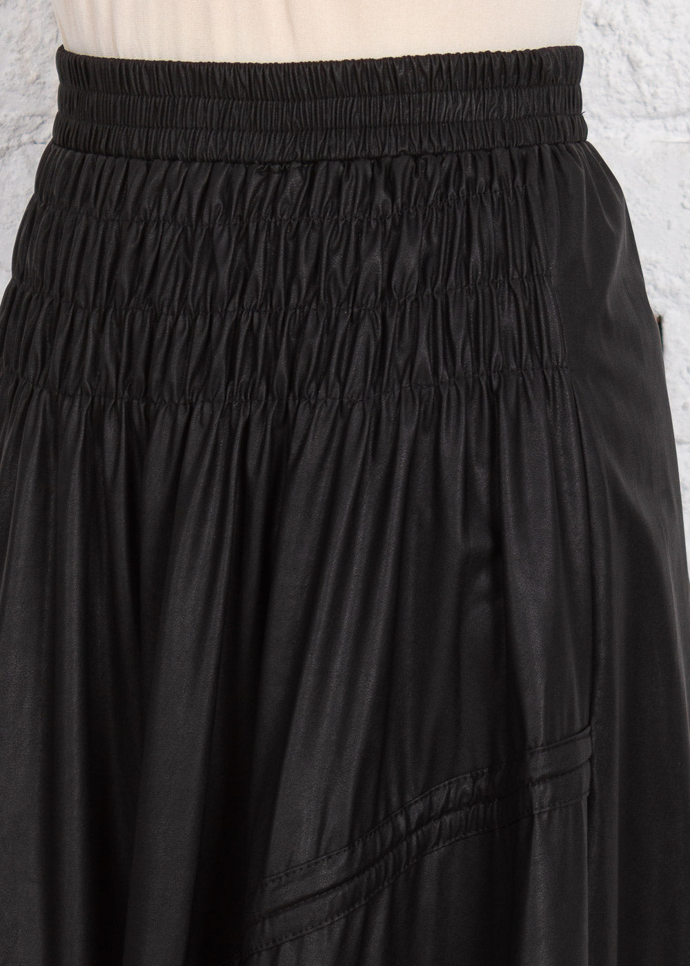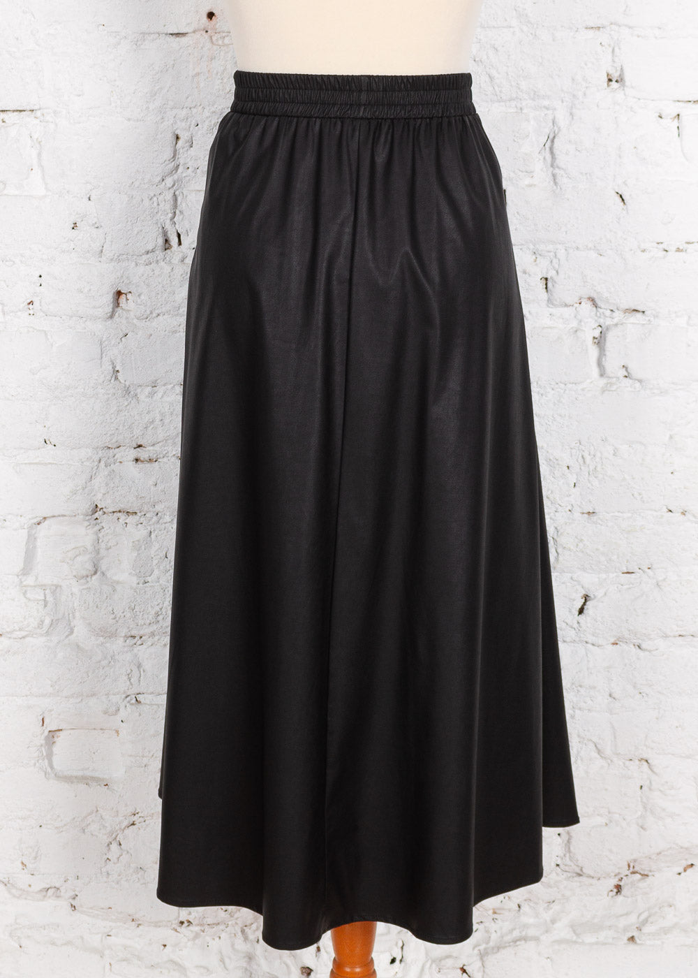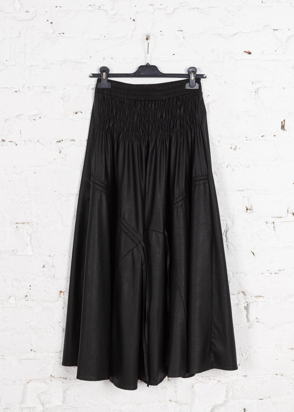 Această fustă neagră midi din piele artificială este alegerea perfectă pentru ținute cu personalitate. Talie elastică, detalii încrețite și șireturi frontale îi conferă un aer modern și feminin. Cu jupă atașată și croială normală, fusta oferă confort și stil, fiind ușor de integrat în garderoba ta.
