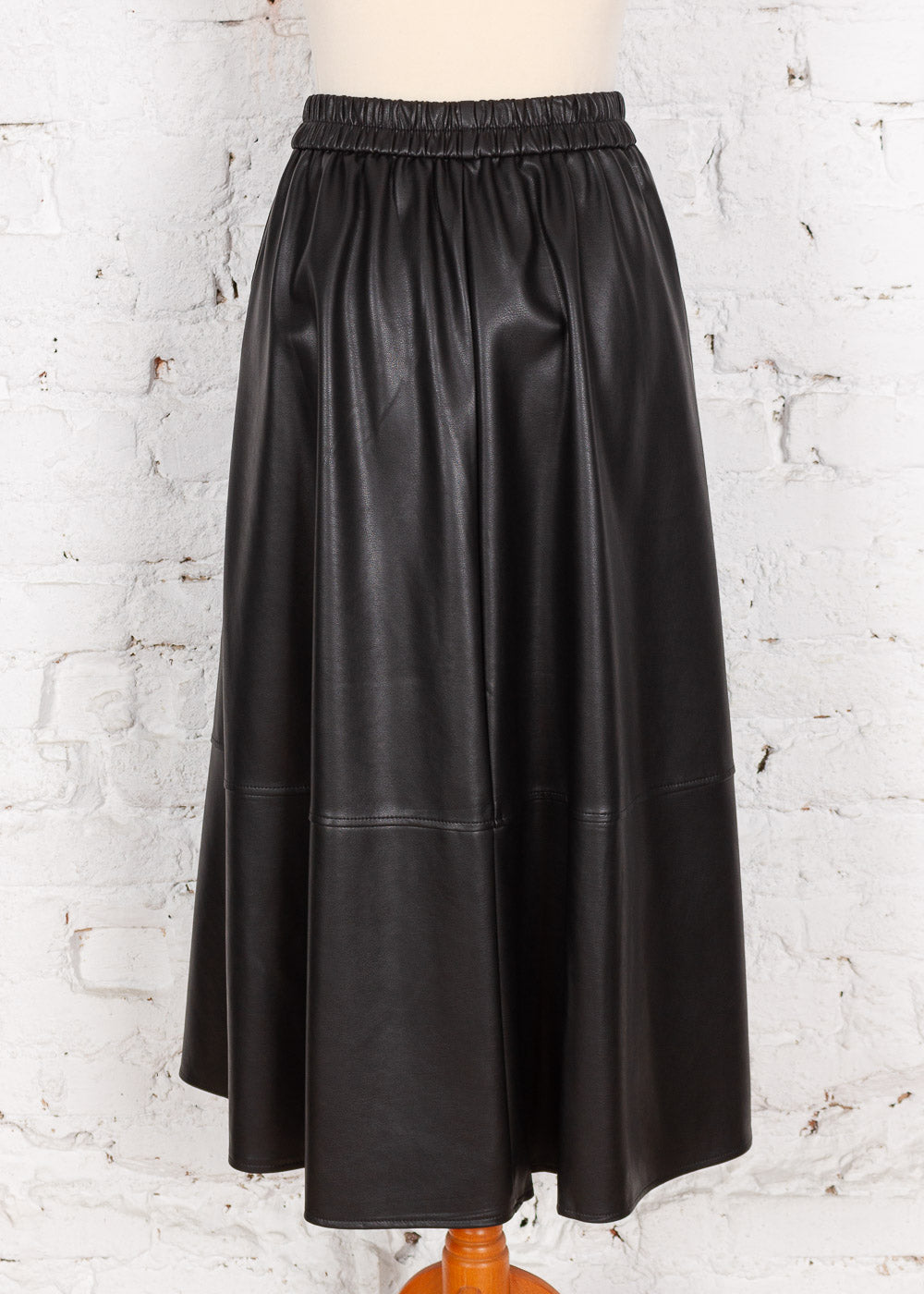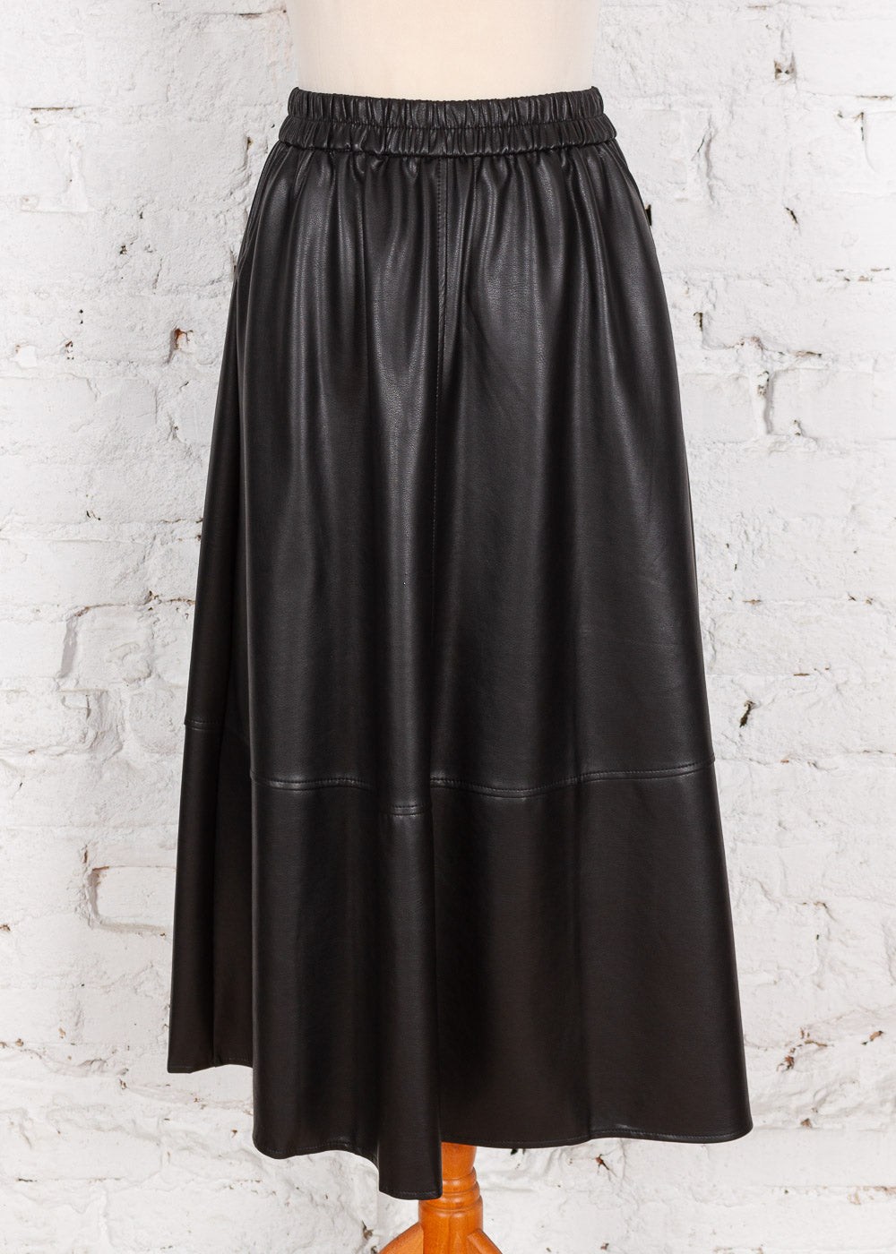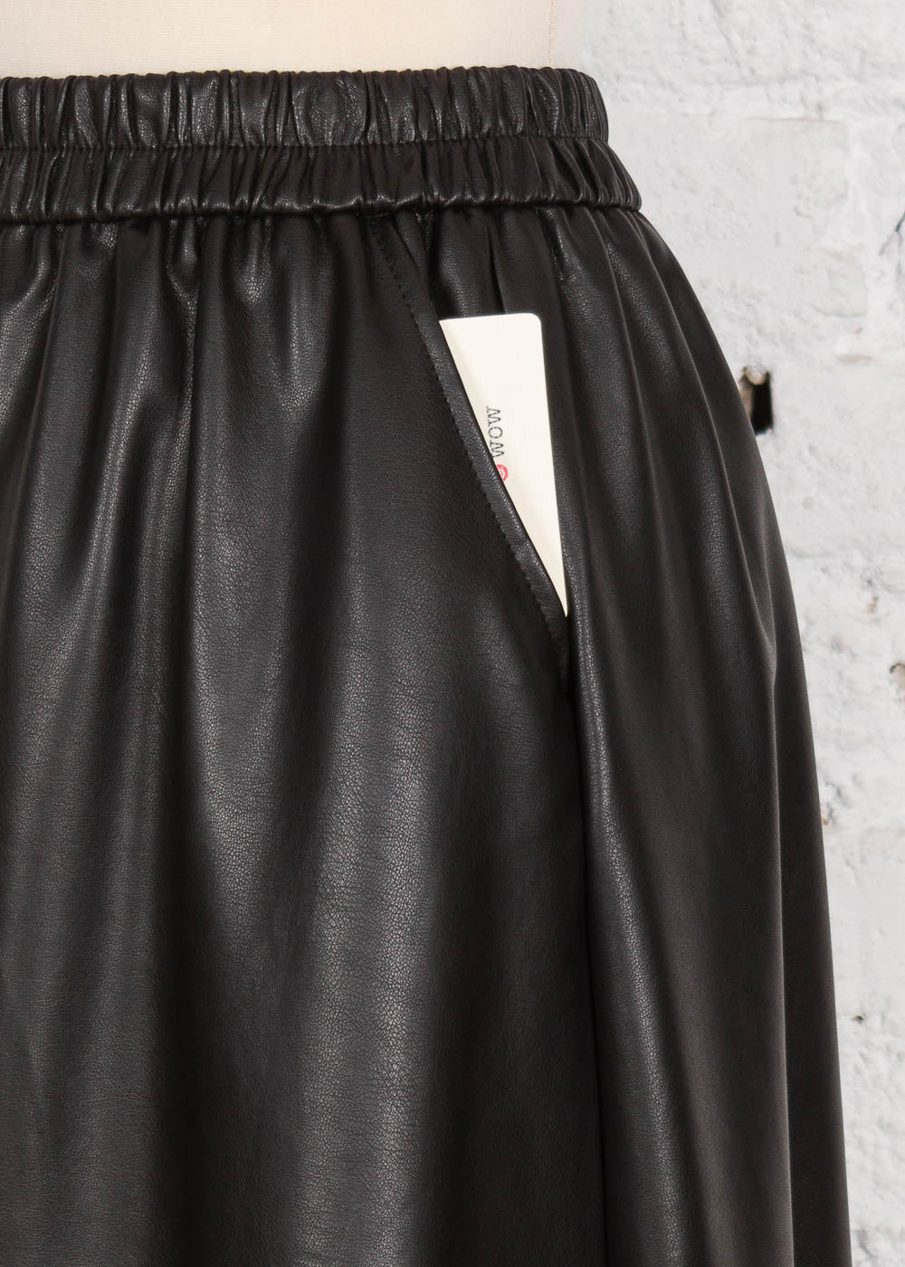 Fusta midi din piele ecologică este o piesă versatilă și modernă, ideală pentru un look feminin cu atitudine. Croiala în A și talia elastică asigură confort și libertate de mișcare, iar textura moale oferă un aspect elegant potrivit pentru zi sau seară.