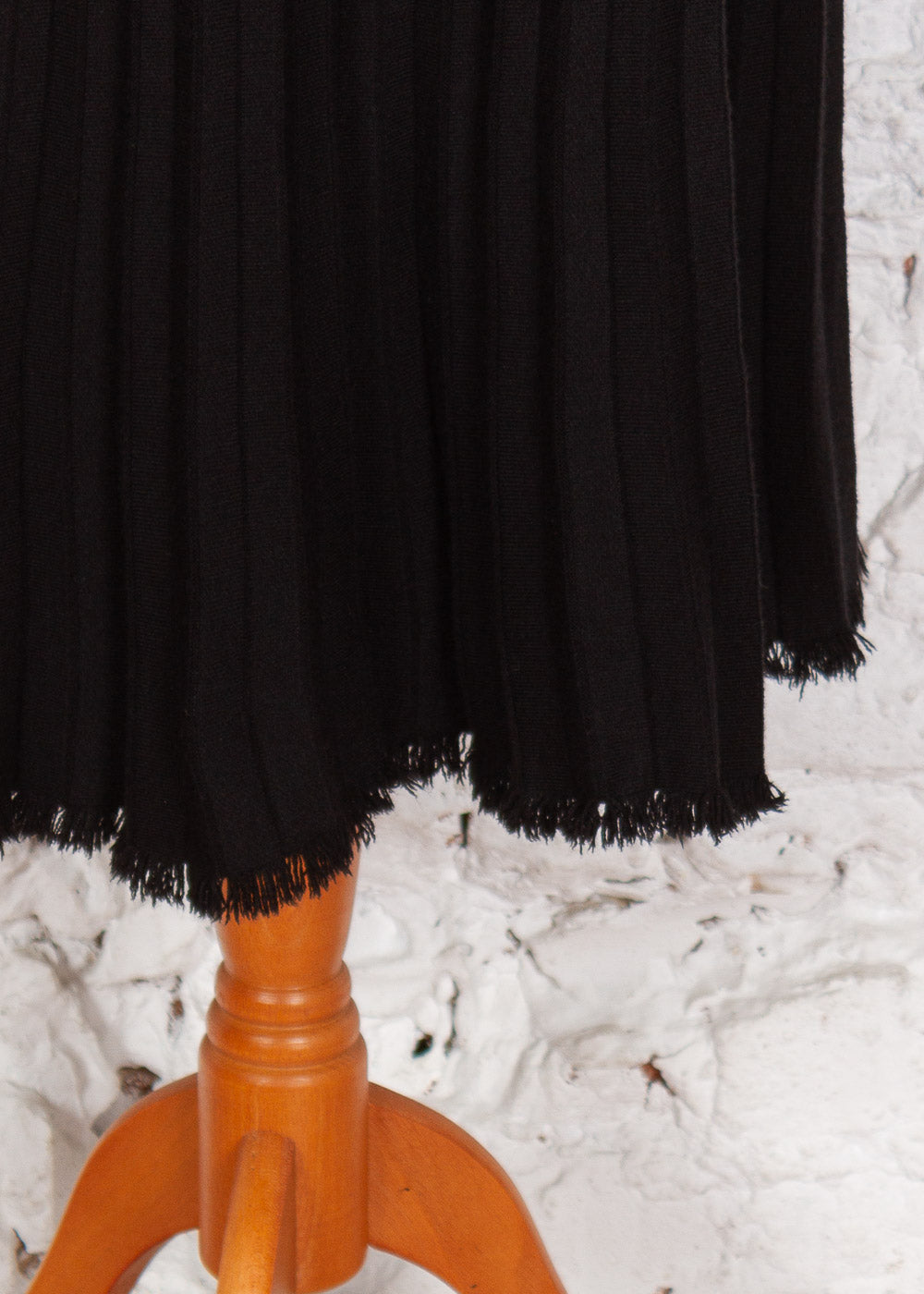 Elegantă și modernă, această fustă din tricot plisat adaugă un aer contemporan oricărei ținute. Terminatia nefinisată, ușor franjurată, oferă un accent stilistic subtil, iar talia elastică asigură confort pe tot parcursul zilei.