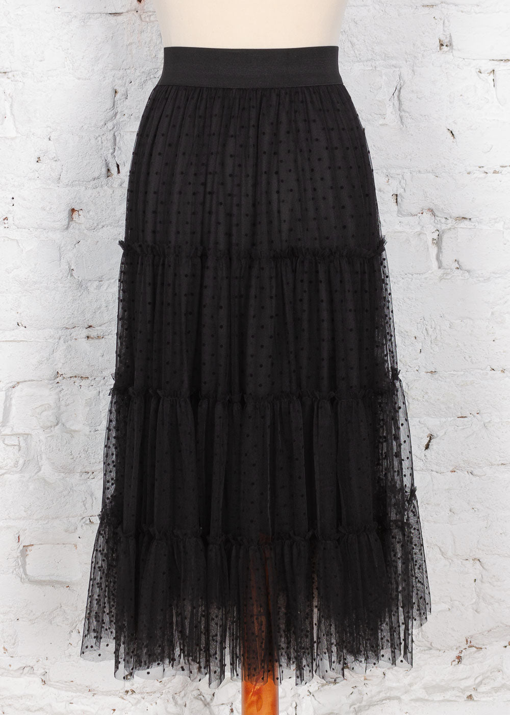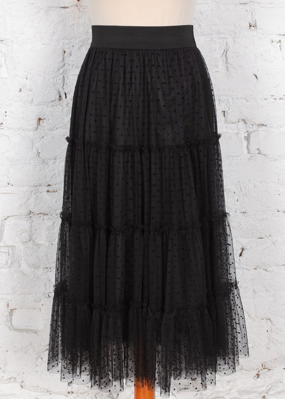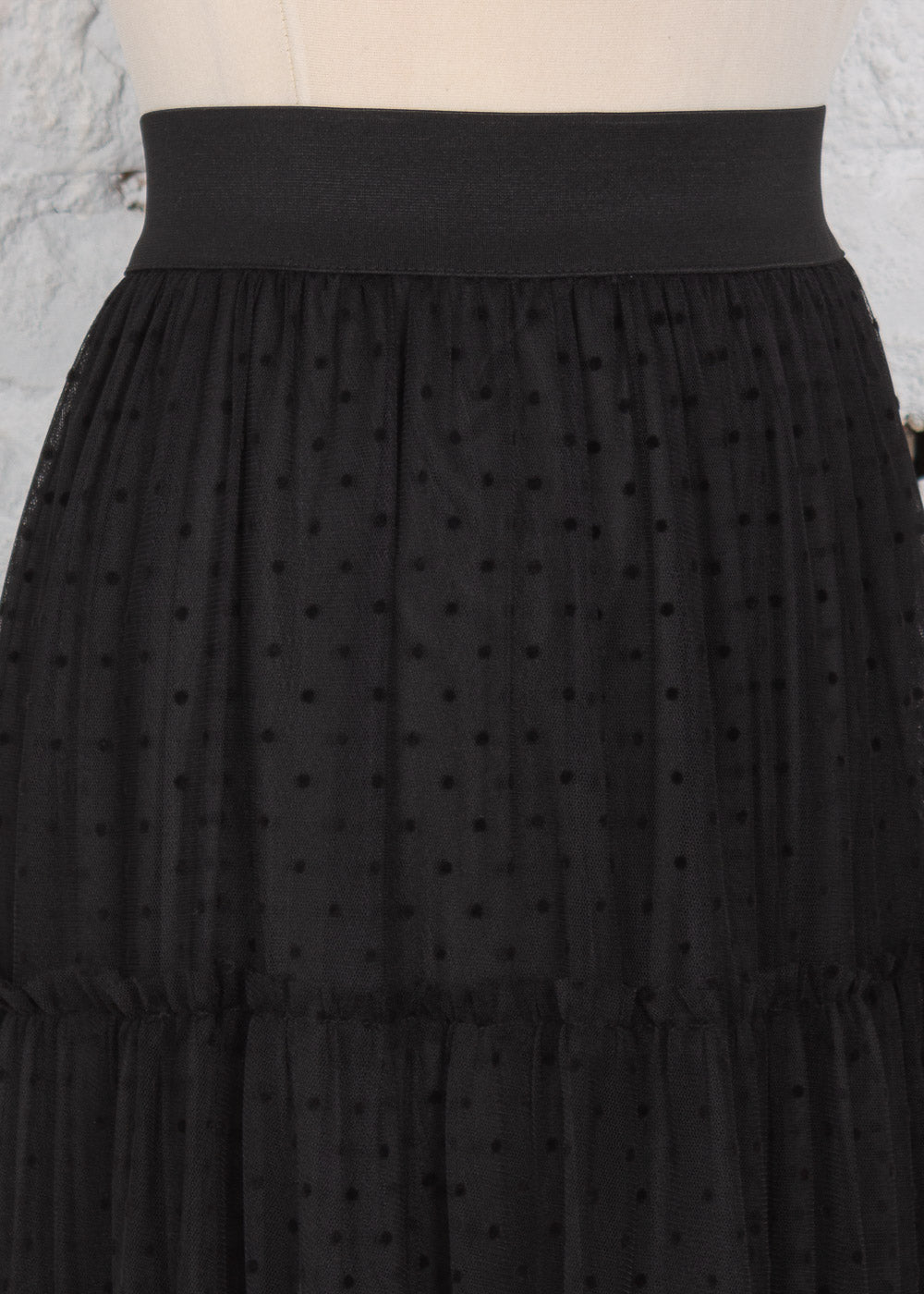 Descoperă farmecul aparte al acestei fuste din tul, un model modern care combină eleganța cu detaliile jucăușe. Cu volane delicate și buline discrete pe stratul exterior, fusta oferă un look romantic și sofisticat, potrivit pentru orice ocazie. Jupa satinată adaugă un plus de confort și rafinament, în timp ce talia elastică asigură o potrivire perfectă pentru orice siluetă.