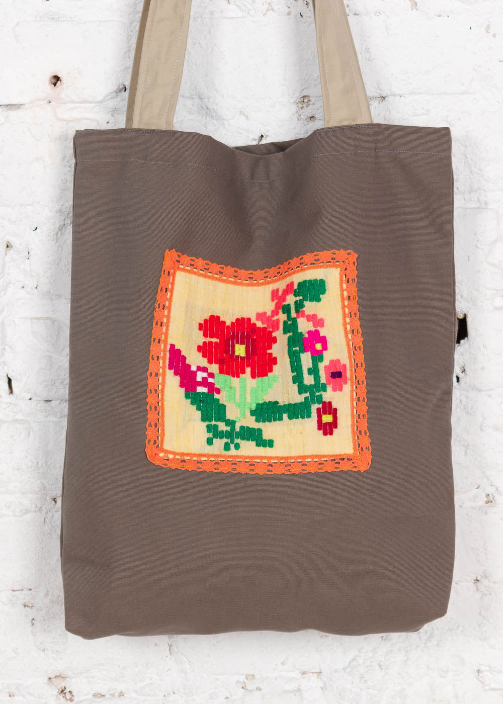 Inspirată de motivele tradiționale românești, "Greige Heritage" este o geantă tote bag lucrată manual în București, ce îmbină măiestria meșteșugului cu un design contemporan. Această geantă versatilă, în culoarea grej, este o alegere perfectă pentru cei care apreciază eleganța discretă și autenticitatea detaliilor tradiționale.