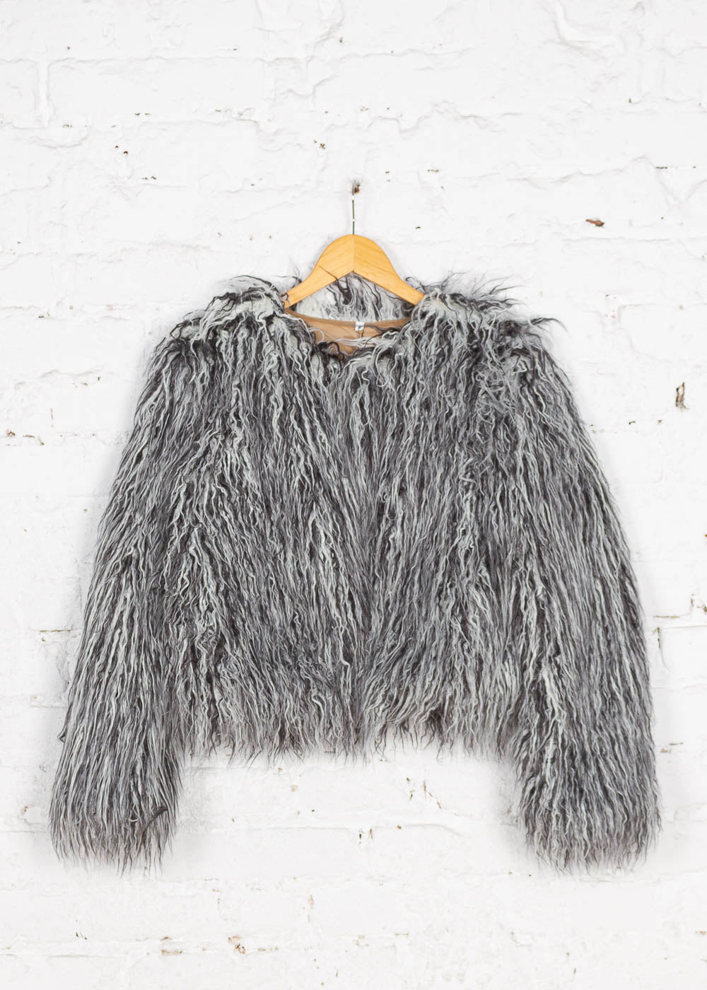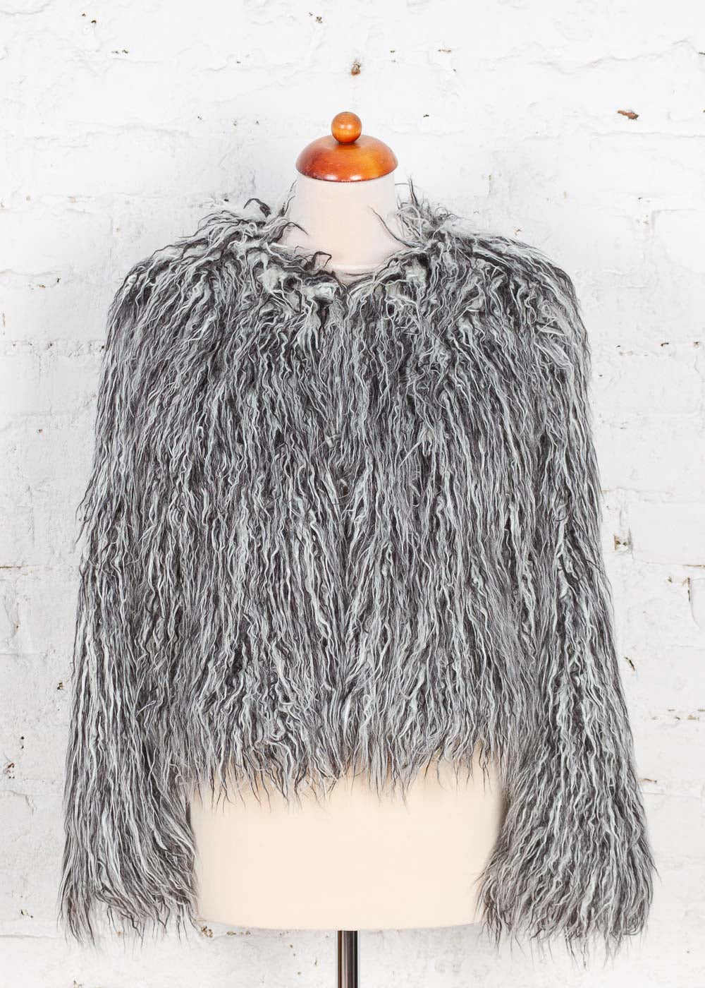 Jacheta scurtă din blană artificială cu fir lung adaugă un aer glam și modern oricărei ținute. Cu textura bogată și mixul sofisticat de nuanțe gri, alb și negru, această piesă devine punctul central al lookului tău, oferind confort și stil în același timp.