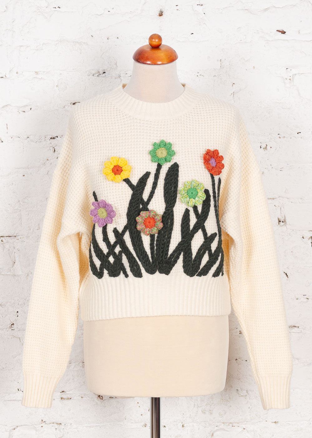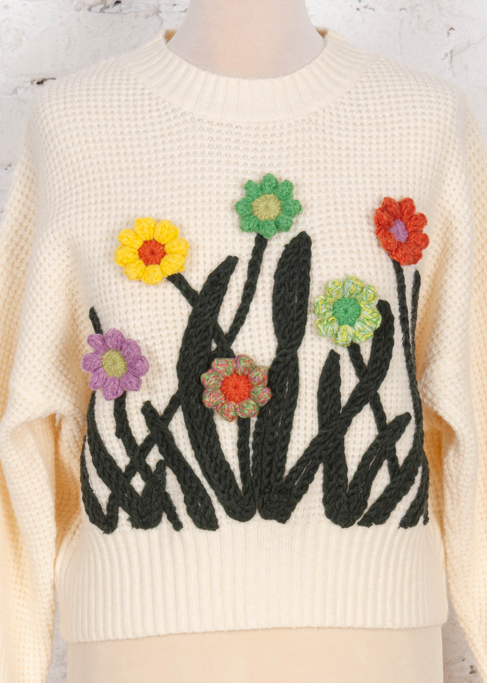 Puloverul April aduce o notă veselă și feminină în garderoba ta. Tricotat dintr-un material moale, cu croi boxy și relaxat, are aplicat un model floral multicolor pe față. Este ușor de purtat, confortabil și ideal pentru ținute casual în sezonul rece.
