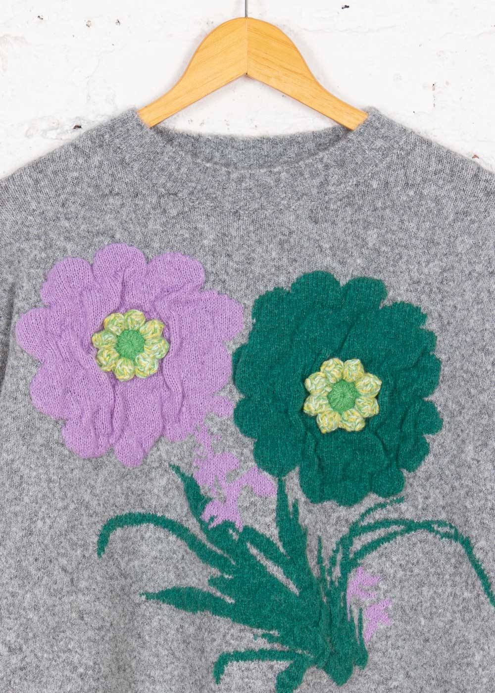 Puloverul cu model floral pe piept aduce o notă feminină și delicată oricărei ținute. Realizat dintr-un amestec cu lână, oferă confort și căldură, iar croiala lejeră îl face ideal pentru un look casual și rafinat.