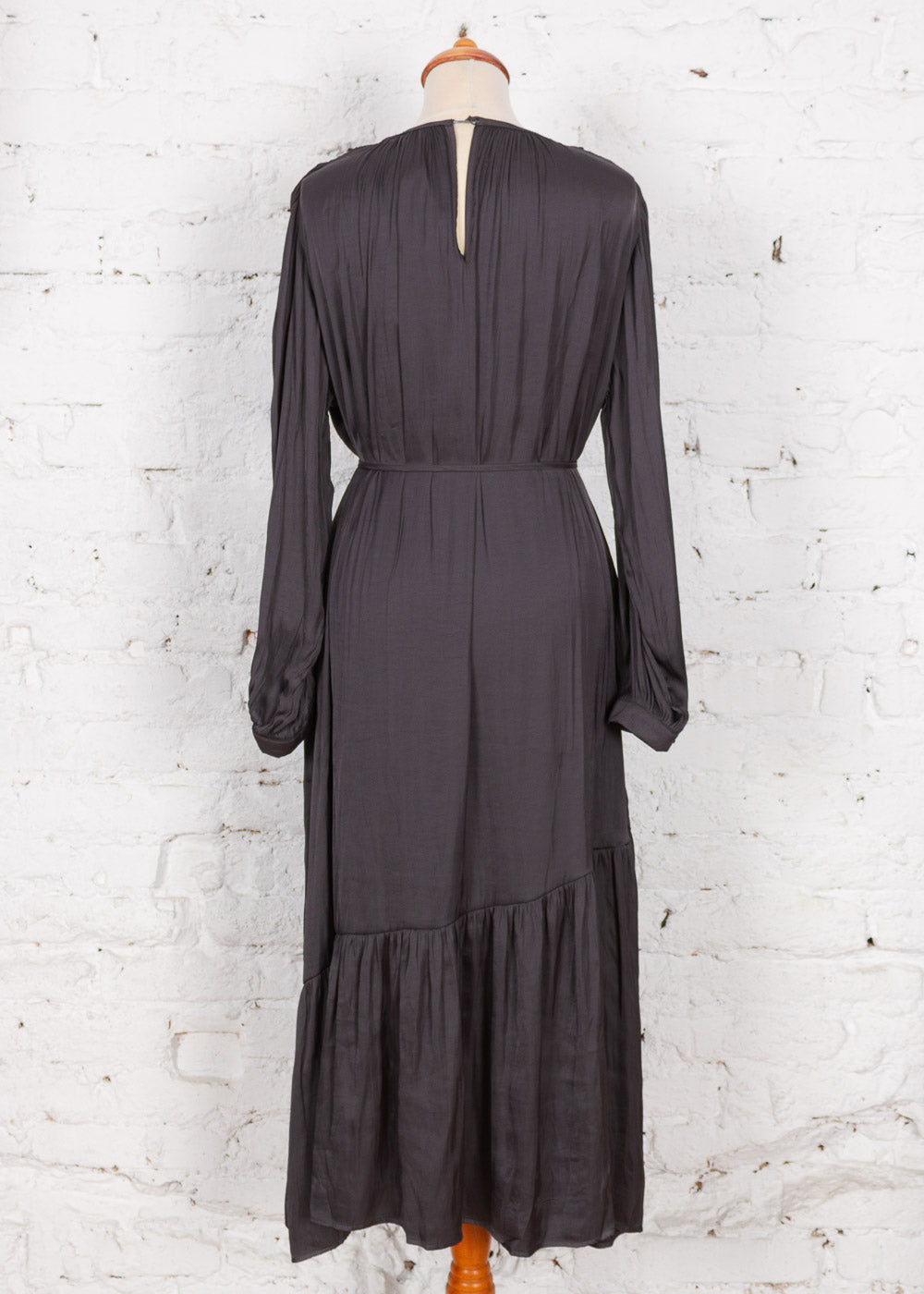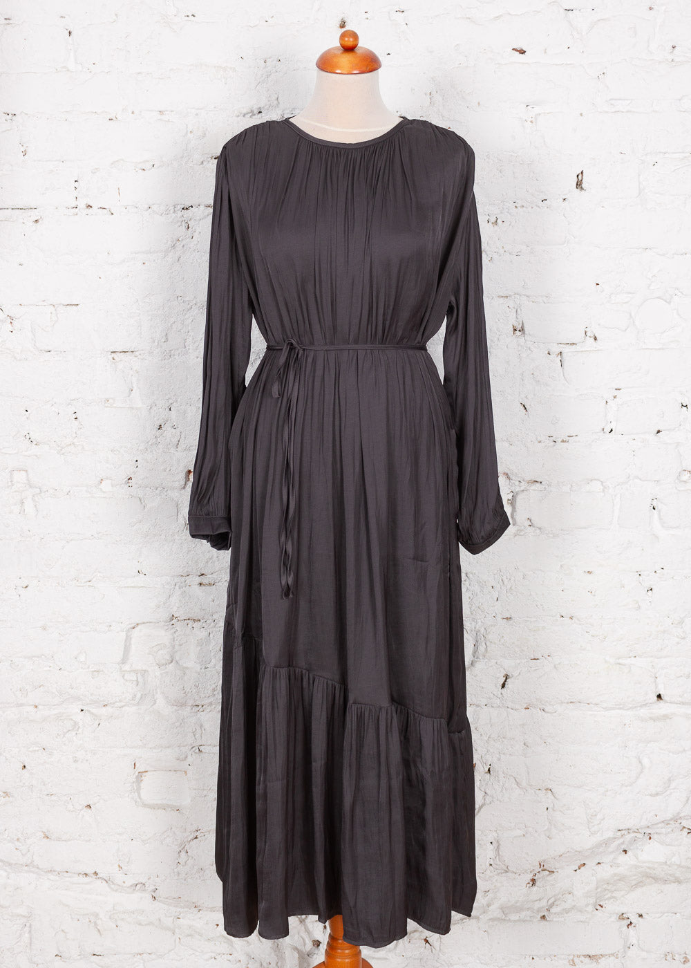 Rochie amplă lungă Amira gri închis satinat