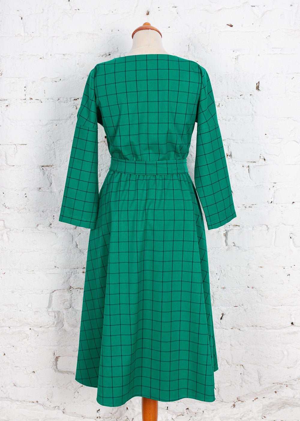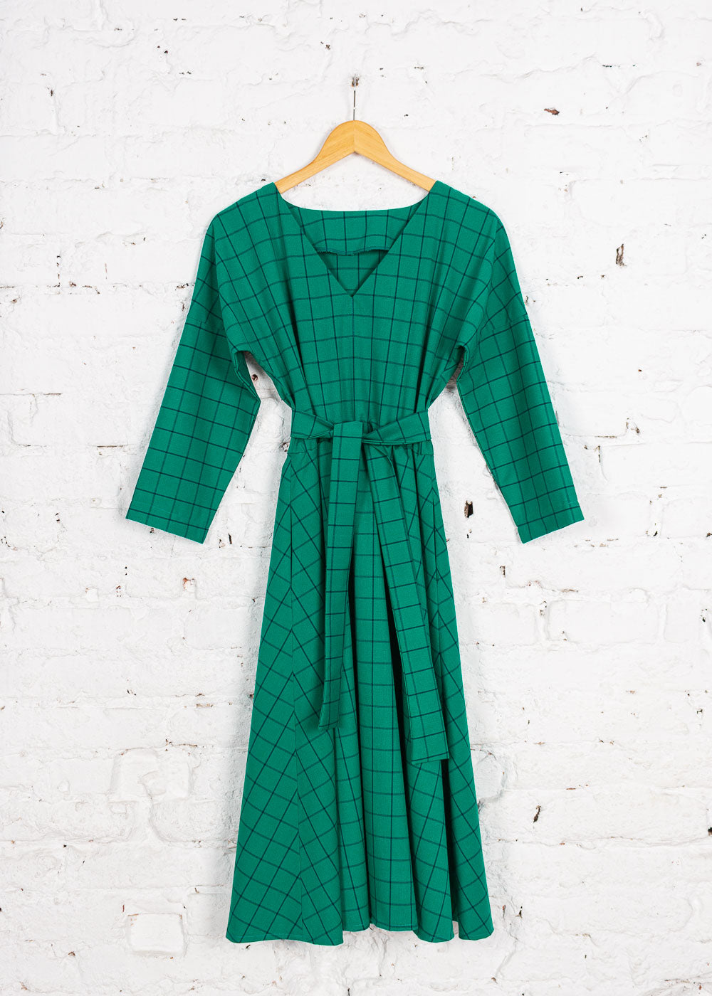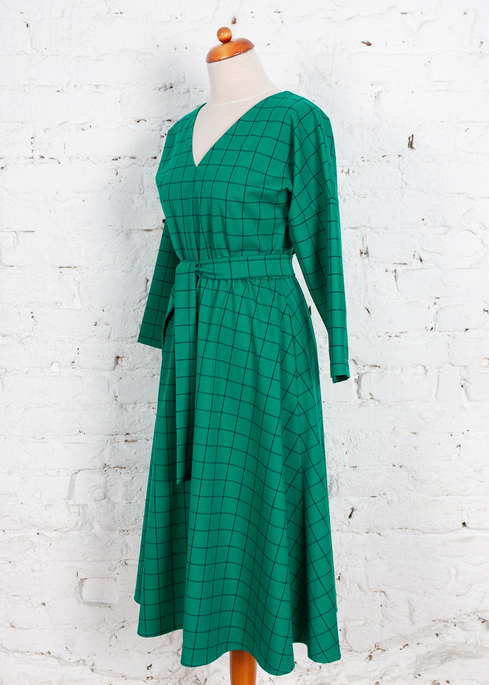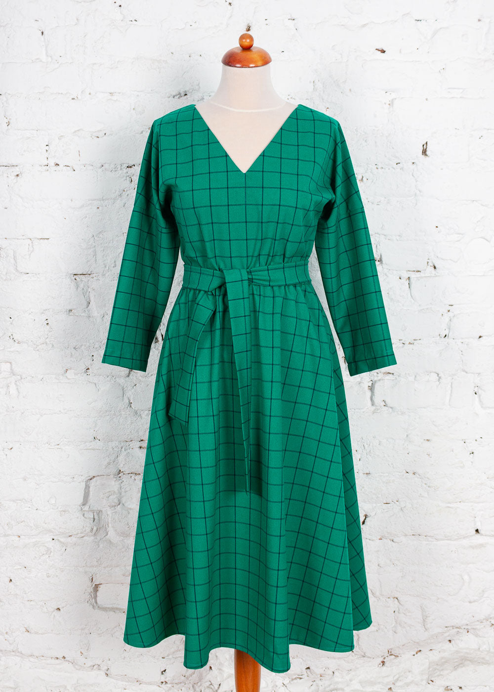 Rochie Pearl cu anchior din bumbac verde cu carouri