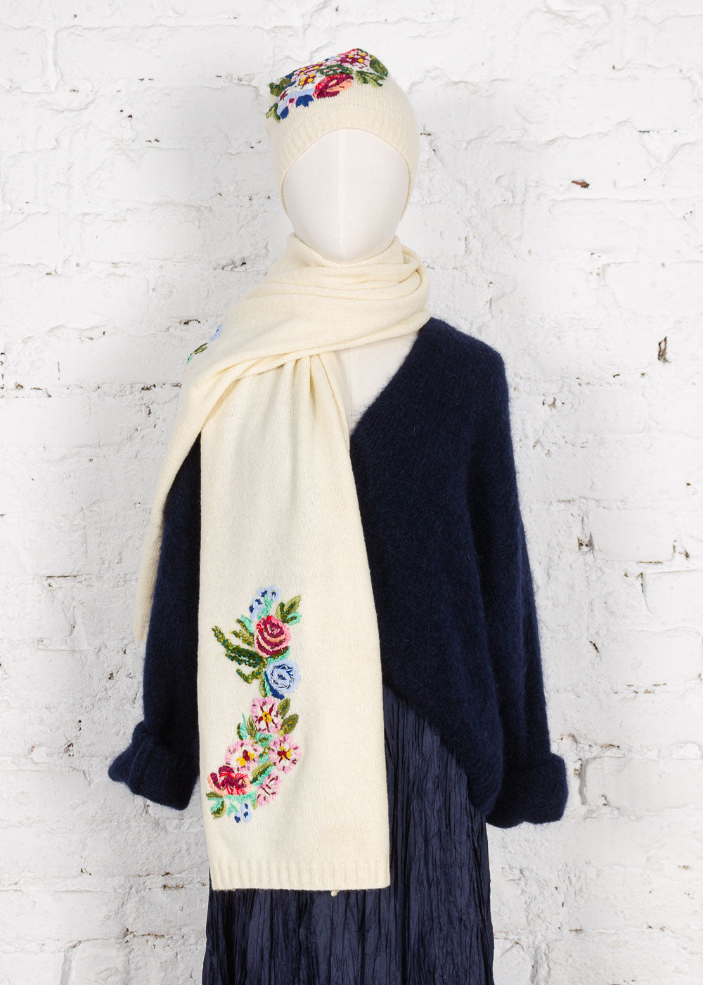 Descoperă eleganța artistică a setului format din fular tip șal și căciulă beanie, o piesă de colecție brodată manual cu motive florale vibrante semnate de artista Danielle Kroll. Realizat dintr-un amestec prețios cu lână, acest set aduce un strop de culoare și căldură rafinată oricărei ținute de iarnă.
